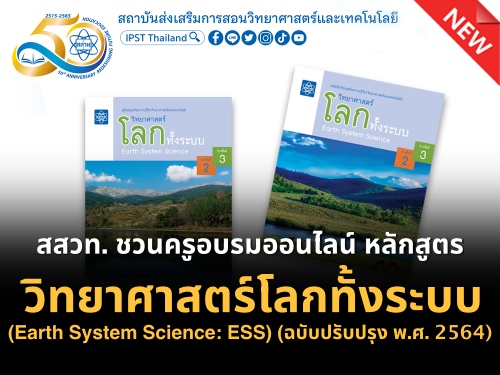 2. ส่งแบบตอบรับการอบรมหลักสูตรวิทยาศาสตร์โลกทั้งระบบ (ฉบับปรับปรุง 2564) และการใช้หลักสูตรวิทยาศาสตร์โลกทั้งระบบ (Earth System Science: ESS) ในโรงเรียน ปีการศึกษา 2565 ที่ ผู้อำนวยการโรงเรียนลงนามรับรองเรียบร้อยแล้ว ทาง email: essipst@gmail.com