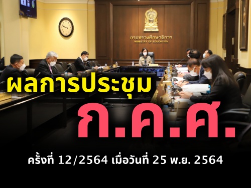ผลการประชุมคณะกรรมการข้าราชการครูและบุคลากรทางการศึกษา (ก.ค.ศ.) ครั้งที่ 12/2564 วันพฤหัสบดีที่ 25 พฤศจิกายน 2564 โดยมีนางสาวตรีนุช เทียนทอง รัฐมนตรีว่าการกระทรวงศึกษาธิการ เป็นประธานการประชุม และมี รศ.ดร.ประวิต เอราวรรณ์ เลขาธิการ ก.ค.ศ. เป็นเลขานุการการประชุม ซึ่งที่ประชุมได้มีการพิจารณาเรื่องที่เกี่ยวข้องกับการบริหารงานบุคคลของข้าราชการครูและบุคลากรทางการศึกษาและมีมติที่สำคัญ ดังนี้