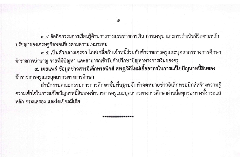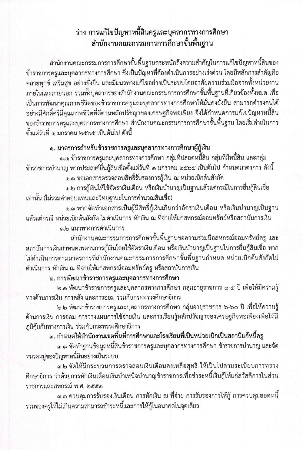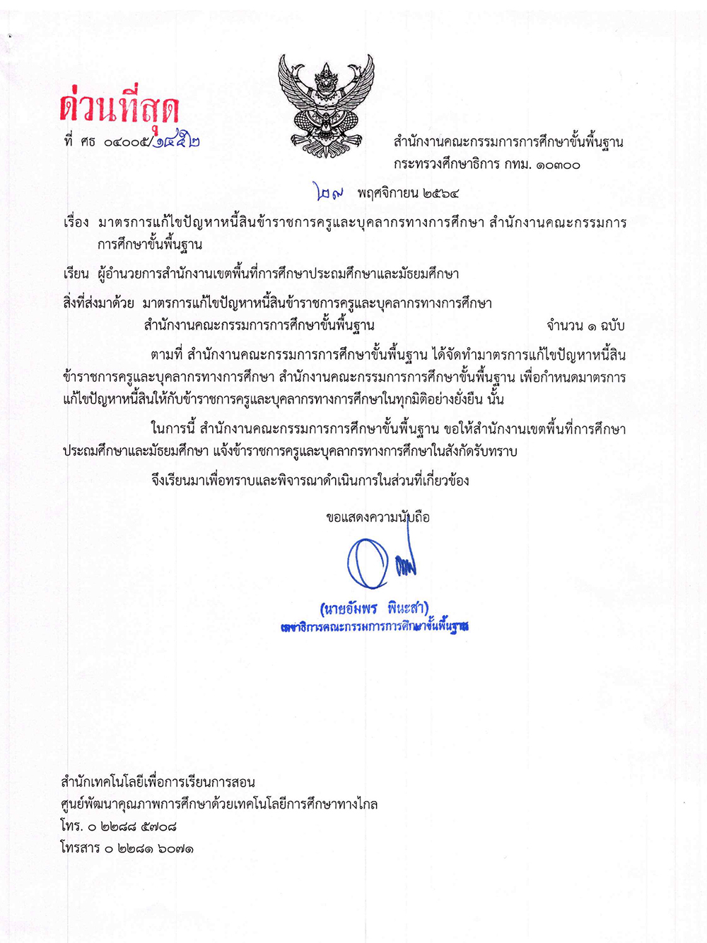 ด่วนที่สุด ที่ ศธ 04005/1452 เรื่อง มาตรการเเก้ไขปัญหาหนี้สินข้าราชการครูเเละบุคลากรทางการศึกษาสำนักงานคณะกรรมการการศึกษาขั้นพื้นฐาน