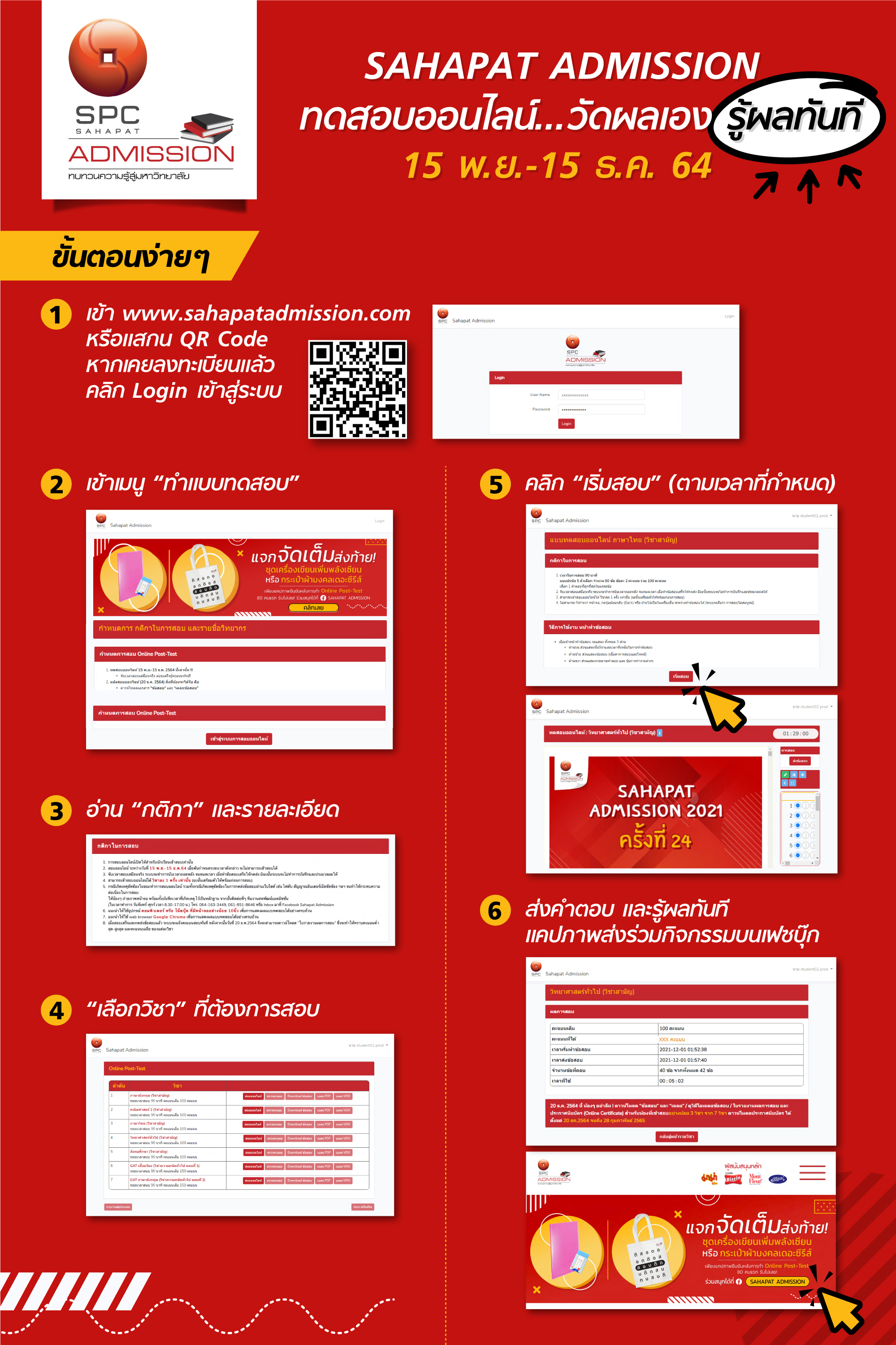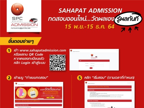 คลิก www.sahapatadmission.com เข้าทดสอบออนไลน์ (15 พ.ย.-15 ธ.ค. 2564) จับเวลาสอบเสมือนจริง สอบเสร็จรู้คะแนนทันที