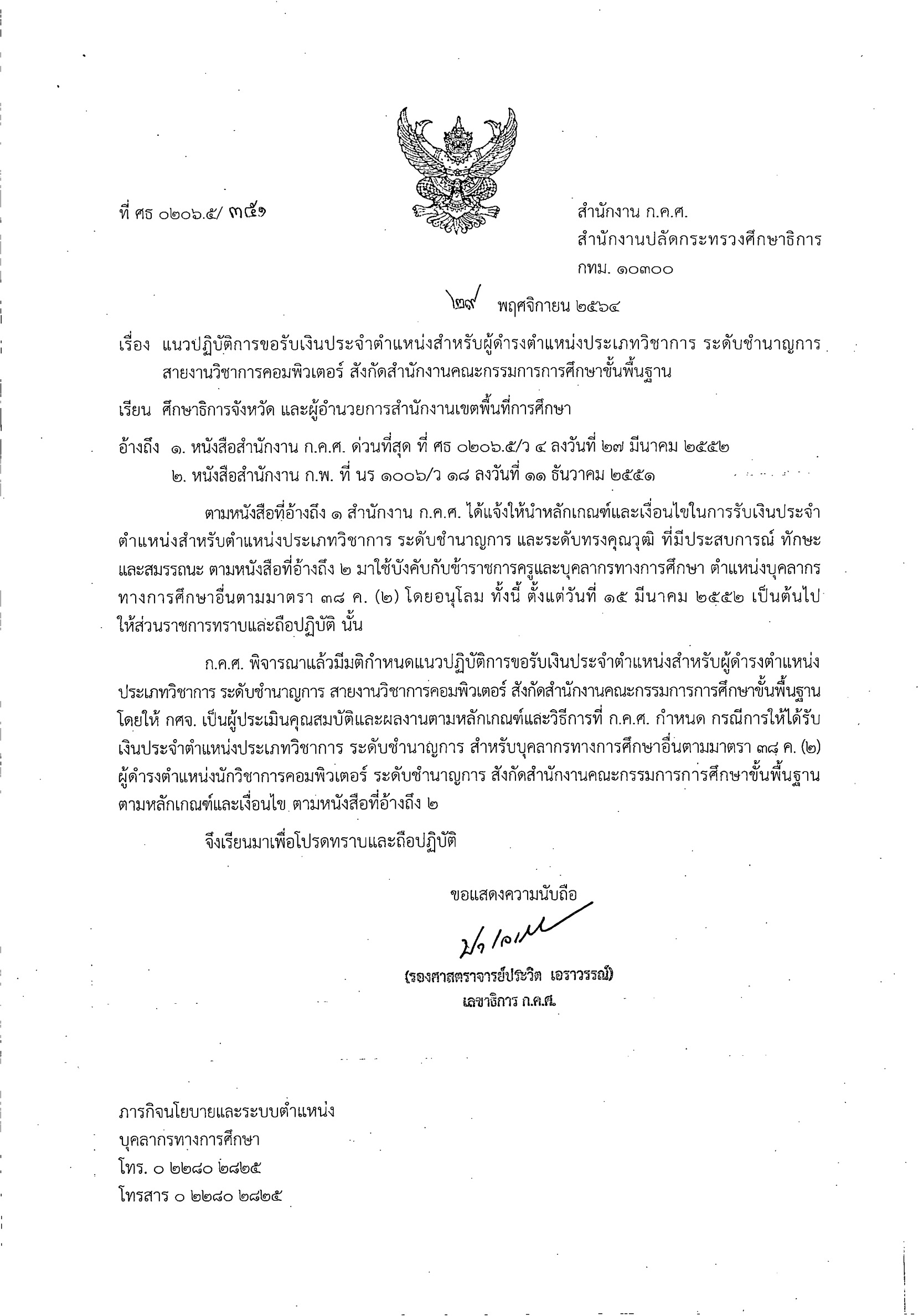 แนวปฎิบัติการขอรับเงินประจำตำแหน่งสำหรับผู้ดำรงตำแหน่งประเภทวิชาการ ระดับชำนาญการสายงานวิชาการคอมพิวเตอร์ สังกัด สพฐ.