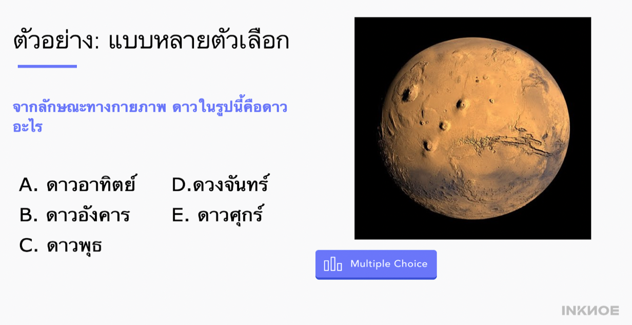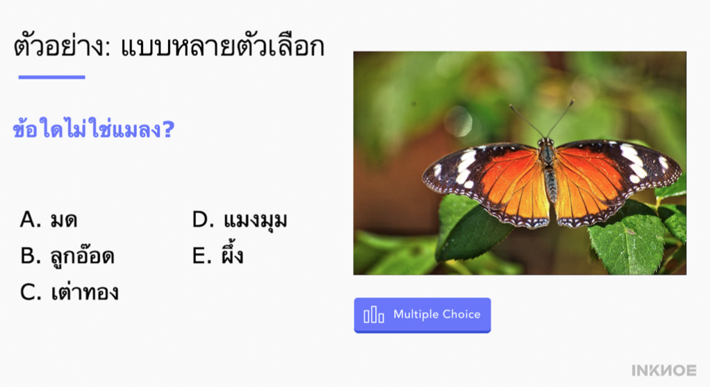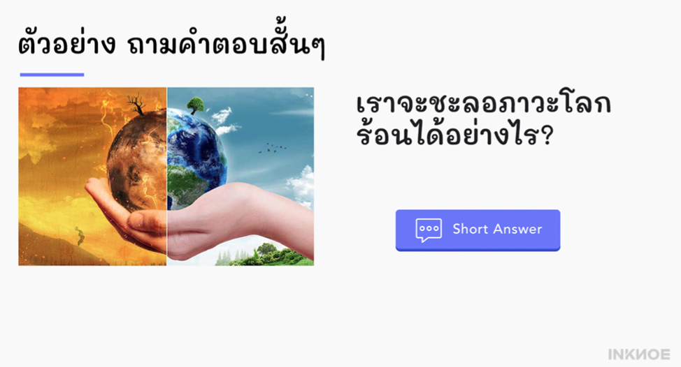 ใช้เวลา 3 นาทีในการสร้างสไลด์คำถามด้านล่างและยังสามารถเพิ่มรูปภาพเพื่อแสดงคำถาม สามารถจัดตำแหน่ง/ปรับขนาดรูปภาพได้ตามต้องการ