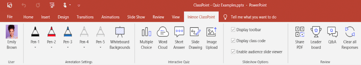 สามารถเลือกนักเรียนตอบคำถามได้ ทั้งชั้นเรียนสามารถมีส่วนร่วมในคำถามนี้และรับคำตอบแบบเรียลไทม์ เพียงเพิ่มปุ่มคำถาม ClassPoint บนสไลด์เพื่อทำให้เป็นสไลด์ตอบคำถามแบบโต้ตอบ