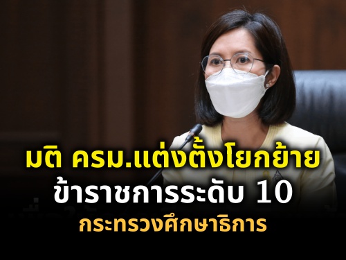 ที่ประชุมคณะรัฐมนตรีมีมติเห็นชอบตามที่ น.ส.ตรีนุช เทียนทอง รัฐมนตรีว่าการศึกษาธิการ เสนอแต่งตั้งโยกย้ายข้าราชการระดับ 10 จำนวน 7 ราย ได้แก่