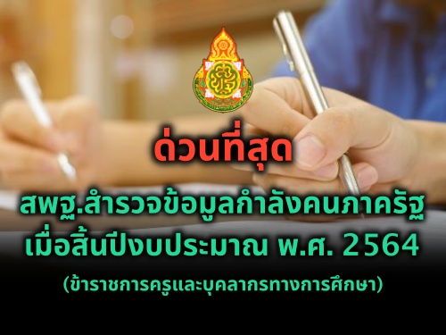 ด่วนที่สุด สพฐ.สำรวจข้อมูลกำลังคนภาครัฐ เมื่อสิ้นปีงบประมาณ พ.ศ. 2564 (ข้าราชการครูและบุคลากรทางการศึกษา)