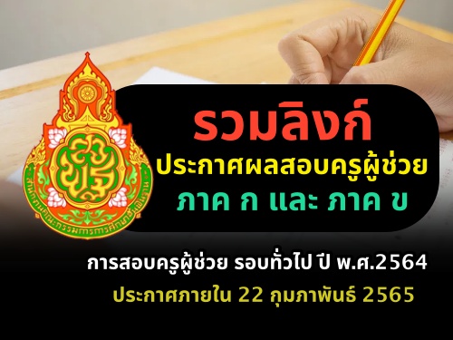 รวมลิงก์ ประกาศผลสอบครูผู้ช่วย 2564 รอบทั่วไป สอบวันที่ 5-6 กุมภาพันธ์ 2565 ผลสอบครูผู้ช่วย ภาค ก ข ประกาศภายใน 22 กุมภาพันธ์ 2565ประกาศผลสอบครูผู้ช่วย 65ประกาศผลสอบครูผู้ช่วย ปี พ.ศ.2564ประกาศผลสอบครูผู้ช่วย 2565