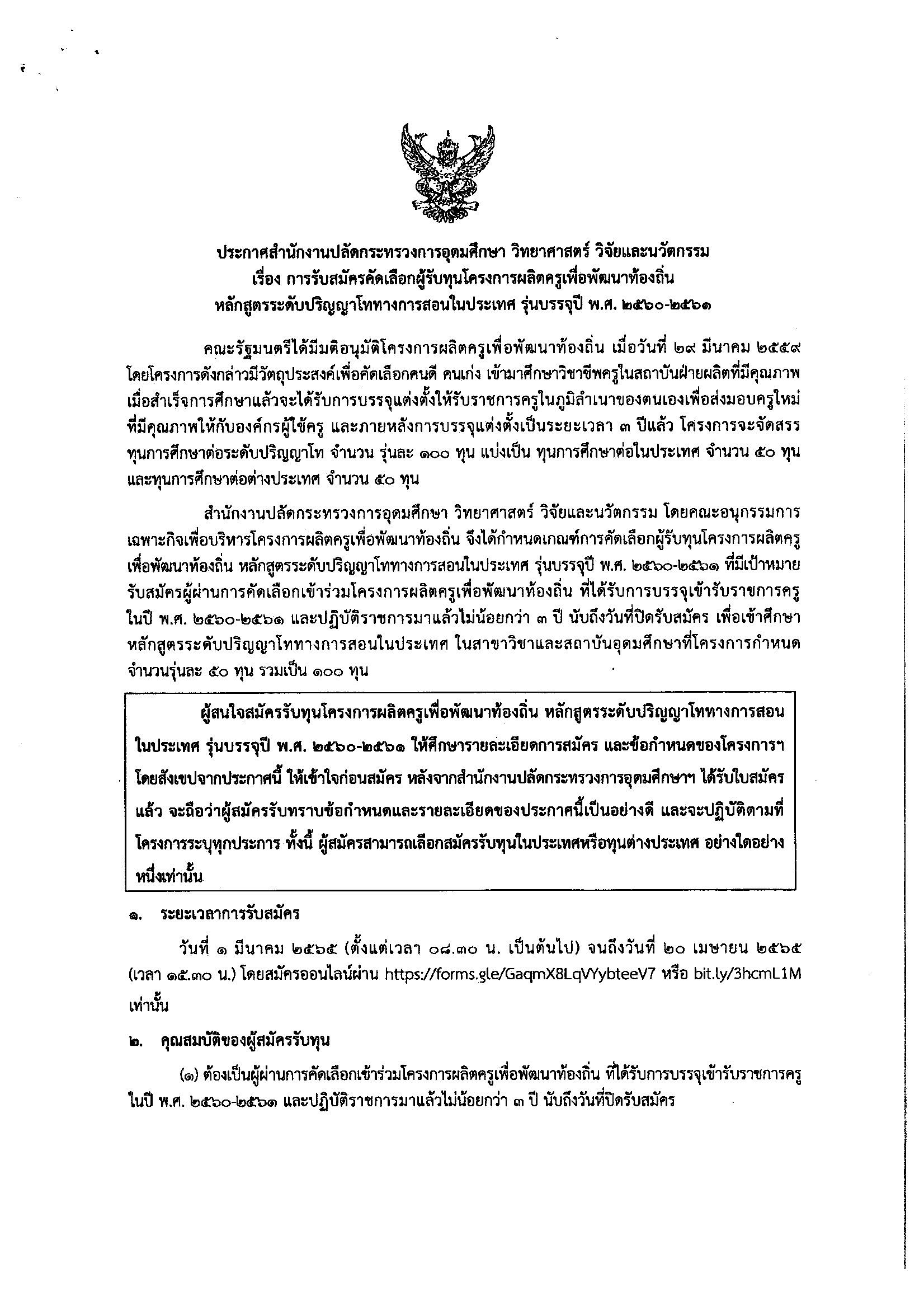 ประชาสัมพันธ์ การรับสมัครคัดเลือกผู้รับทุนโครงการผลิตครูเพื่อพัฒนาท้องถิ่น หลักสูตรระดับปริญญาโททางการสอนในประเทศ/ต่างประเทศ รุ่นบรรจุปี พ.ศ. 2560 – 2561