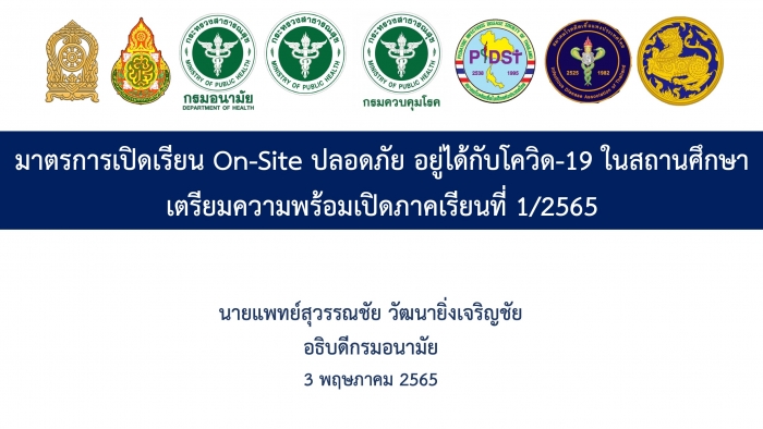เมื่อวันที่ 3 พ.ค. ที่กระทรวงสาธารณสุข นายสาธิต ปิตุเตชะ รมช.สาธารณสุข กล่าวประชุมชี้แจงมาตรการเปิดเรียน On-Site ปลอดภัย อยู่ได้กับโควิด-19 ในสถานศึกษารับเปิดภาคเรียนที่ 1/2565 ว่า สธ.ได้ร่วมมือกับกระทรวงศึกษาธิการ วางมาตรการรองรับการเปิดภาคเรียนออนไซต์เต็มรูปแบบวันที่ 17 พ.ค. โดยเน้นย้ำ คือ