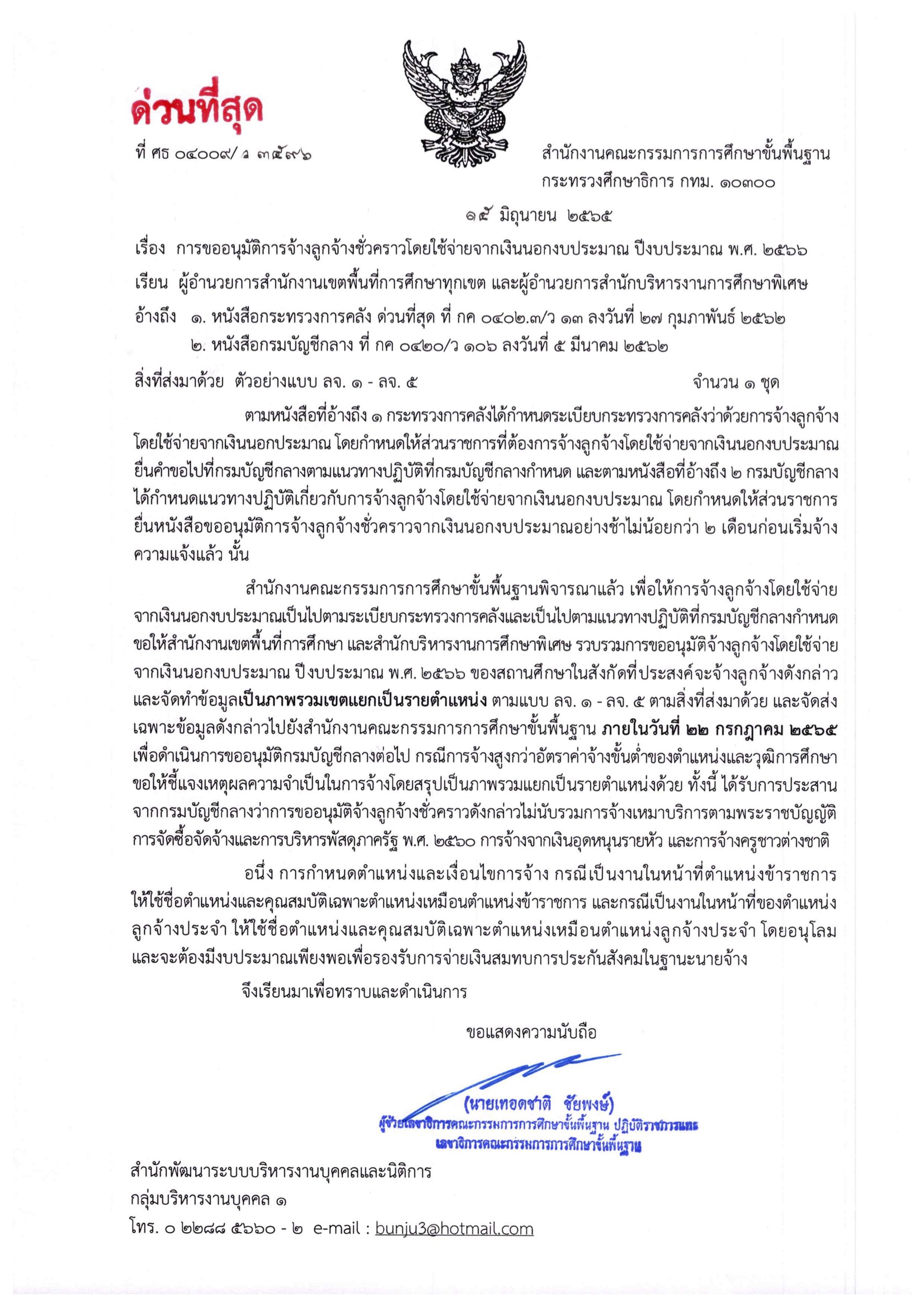 การขออนุมัติการจ้างลูกจ้างชั่วคราวโดยใช้จ่ายจากเงินนอกงบประมาณ ปีงบประมาณ พ.ศ. 2566