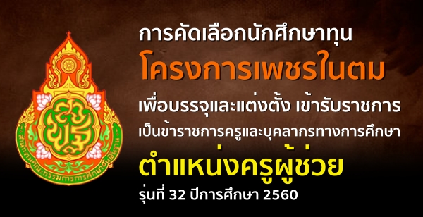 ด้วยสำนักงานคณะกรรมการการศึกษาขั้นพื้นฐานมีความประสงค์จะบรรจุและแต่งตั้ง นักศึกษาทุนโครงการเพชรในตม รุ่นที่ ๓๒ ปีการศึกษา ๒๕'๖๐ เข้ารับราชการเป็นข้าราชการครูและบุคลากร ทางการศึกษา ตำแหน่งครูผู้ช่วย จำนวน ๔๕ ราย ในการนี้ จึงขอส่งรายชื่อนักศึกษาทุนโครงการเพชรในตม ดังกล่าวและสถานศึกษาที่รองรับการบรรจุ เพื่อให้สำนักงานศึกษาธิการจังหวัด เสนอคณะกรรมการศึกษาธิการจังหวัดดำเนินการคัดเลือกกรณีมีสัญญาผูกพันตามโครงการพิเศษ หรือโครงการ นักเรียนทุนรัฐบาล ตามหลักเกณฑ์และวิธีการที่ ก.ค.ศ. กำหนด ตามหนังสือสำนักงาน ก.ค.ศ. ที่ ศธ ๑๒๐๖.๖/ว ๑๖ ลงวันที่ ๒๖ พฤศจิกายน ๒๕๕๗ และเพื่อให้การดำเนินการคัดเลือกเป็นไปด้วยความเรียบร้อย เกิดประโยชน์ สูงสุดแก่ทางราชการ สำนักงานคณะกรรมการการศึกษาขั้นพื้นฐานจึงขอให้ดำเนินการบรรจุและแต่งตั้ง นักศึกษาทุนดังกล่าวให้แล้วเสร็จภายในเดือนสิงหาคม ๒๕๖๕ เมื่อดำเนินการคัดเลือกเสร็จสิ้นเรียบร้อยแล้ว ขอให้รายงานผลให้สำนักงานคณะกรรมการการศึกษาขั้นพื้นฐานทราบ ตามสิ่งที่ส่งมาด้วย ๒ ทั้งนี้ ได้แจ้ง สำนักงานปลัดกระทรวงศึกษาธิการและสำนักงานเขตพื้นที่การศึกษาทราบด้วยแล้ว