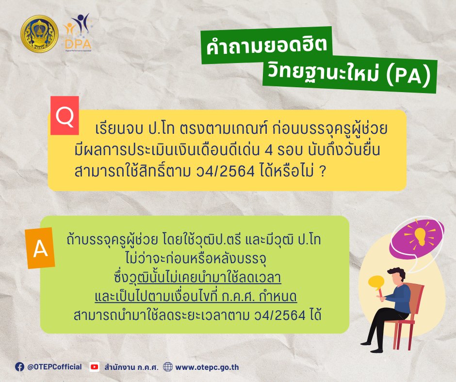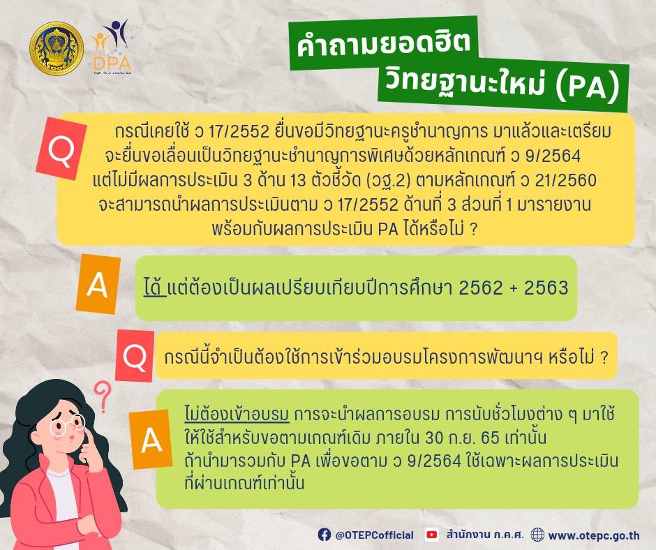 รวมคำถามจาก #ครูผู้นำการเปลี่ยนแปลง ของ ก.ค.ศ. ซึ่งได้จากการลงพื้นที่ และร่วมสื่อสาร ให้ความรู้เกี่ยวกับการประเมินมาตรฐานตำแหน่งและวิทยฐานะใหม่ (PA)