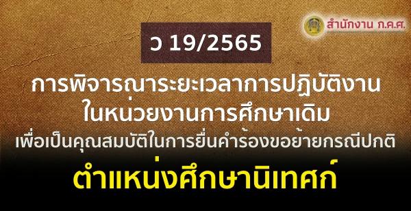 เรื่อง การพิจารณาระยะเวลาการปฏิบัติงานในหน่วยงานการศึกษาเดิม เพื่อเป็นคุณสมบัติ ในการยื่นคำร้องขอย้ายกรณีปกติ ตำแหน่งศึกษานิเทศก์