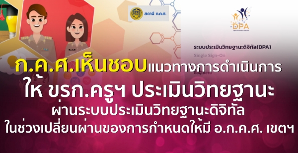 ที่ประชุม ก.ค.ศ. ครั้งที่ 9/2565 วันที่ 21 กันยายน 2565 เห็นชอบ แนวทางการดำเนินการให้ข้าราชการครูและบุคลากรทางการศึกษา สังกัด สพป.และ สพม. มีวิทยฐานะและเลื่อนวิทยฐานะผ่านระบบประเมินวิทยฐานะดิจิทัล ในช่วงเปลี่ยนผ่านของการกำหนดให้มี อ.ก.ค.ศ. เขตพื้นที่การศึกษาประถมศึกษา และ อ.ก.ค.ศ. เขตพื้นที่การศึกษามัธยมศึกษา
