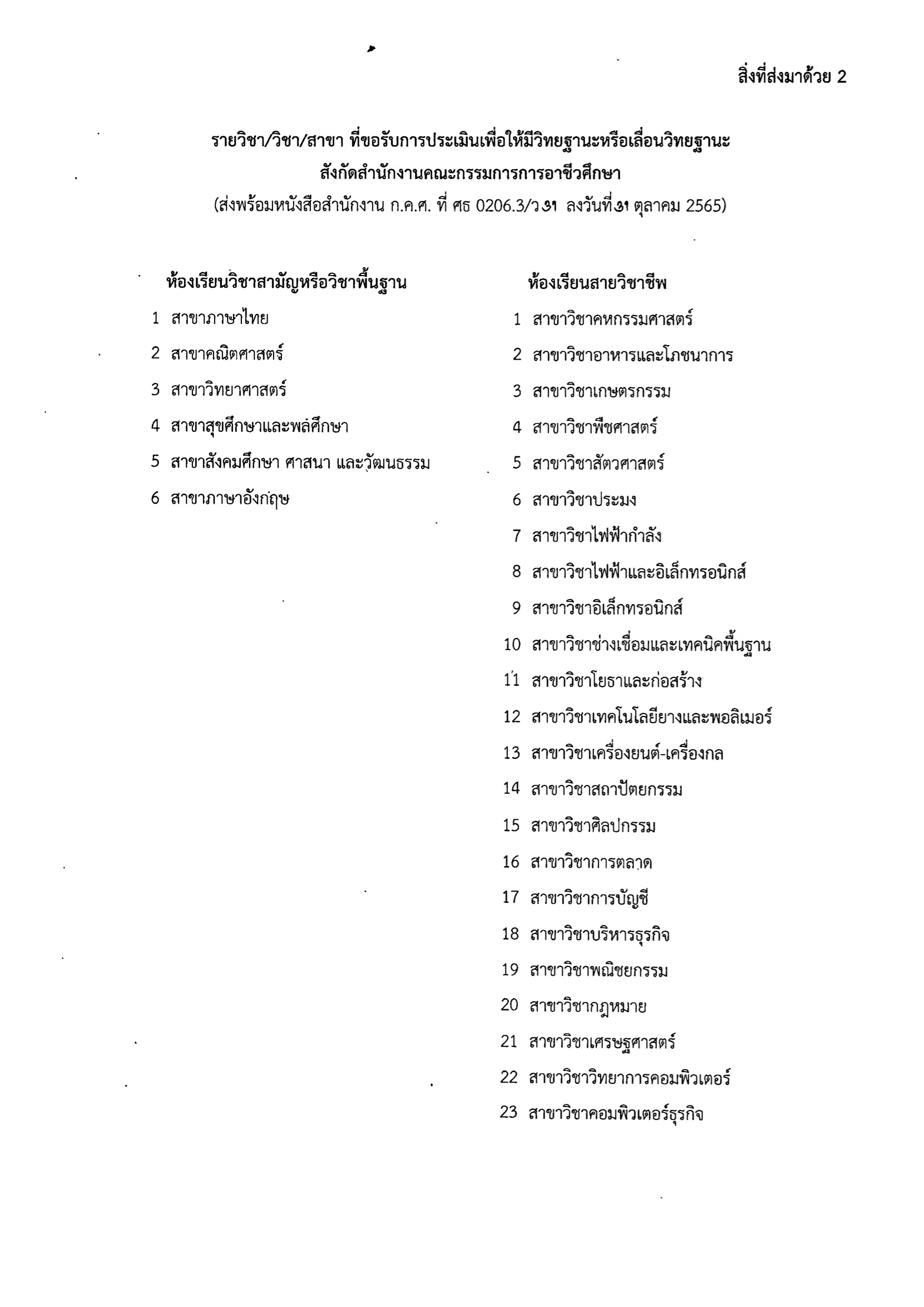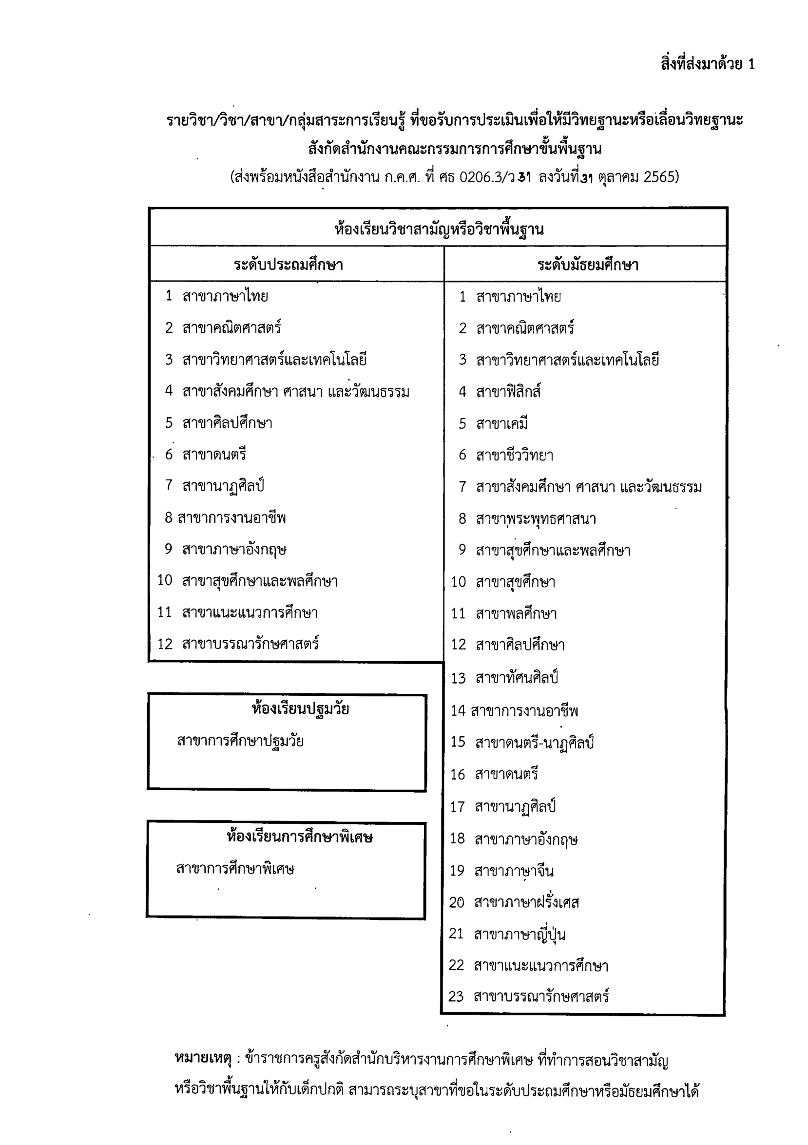 ว 31/2565 แนวปฏิบัติการกำหนดรายวิชา/วิชา/สาขา/กลุ่มสาระการเรียนรู้ ที่ขอรับการประเมินเพื่อให้มีวิทยฐานะหรือเลื่อนวิทยฐานะ