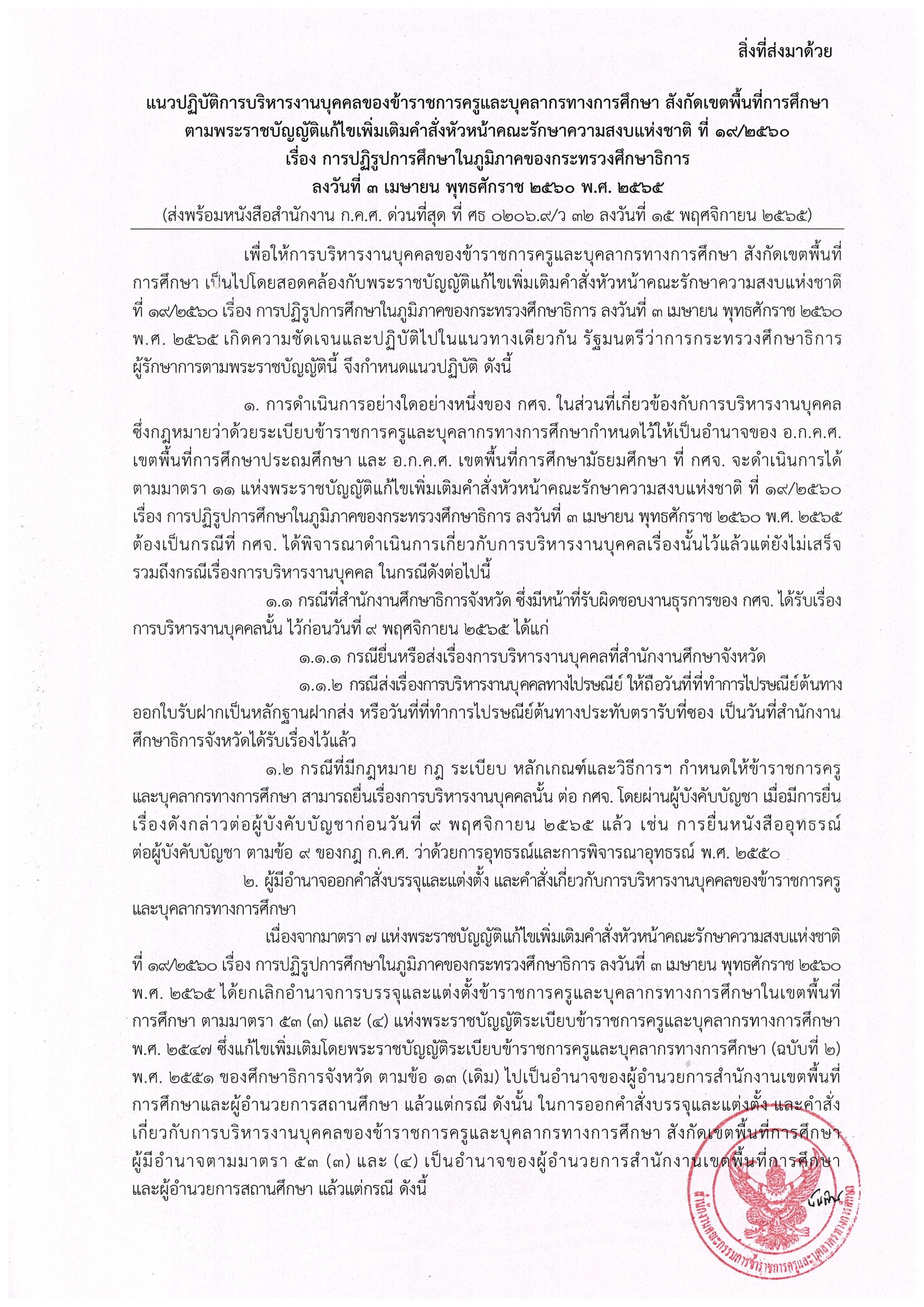 ว32/2565 แนวปฏิบัติเกี่ยวกับการบริหารงานบุคคลของข้าราชการครูและบุคลากรทางการศึกษา