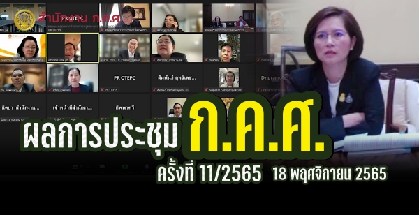 ผลการประชุมคณะกรรมการข้าราชการครูและบุคลากรทางการศึกษา (ก.ค.ศ.) ครั้งที่ 11/2565 วันศุกร์ที่ 18 พฤศจิกายน 2565 โดยมีนางสาวตรีนุช เทียนทอง รัฐมนตรีว่าการกระทรวงศึกษาธิการ เป็นประธานการประชุมและมี รศ.ดร.ประวิต เอราวรรณ์ เลขาธิการ ก.ค.ศ. เป็นเลขานุการการประชุม ซึ่งที่ประชุมได้มีการพิจารณาเรื่องที่เกี่ยวข้องกับการบริหารงานบุคคลของข้าราชการครูและบุคลากรทางการศึกษาและมีมติที่สำคัญ ดังนี้