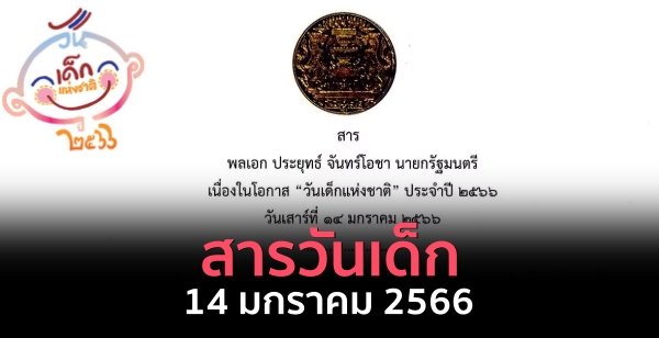 เนื่องในโอกาส “วันเด็กแห่งชาติ” ประจำปี 2566 ผมขอส่งความระลึกถึง และความปรารถนาดีมายังเด็กและเยาวชนที่รักทุกคน และขออวยพรให้เด็กและเยาวชนไทยทุกคน ประสบแต่ความสุข ความเจริญ มีสุขภาพกาย สุขภาพใจที่แข็งแรง สมบูรณ์ มีพลังกาย พลังใจ พลังสติปัญญาที่เข้มแข็ง และสัมฤทธิผลในสิ่งที่มุ่งหมายทุกประการโดยทั่วกัน”