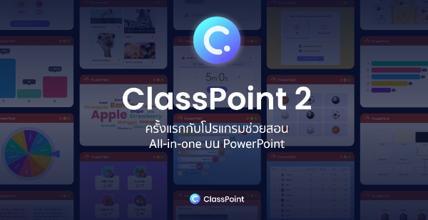 ส่วนเสริม ClassPoint เป็นที่รู้จักอย่างกว้างขวางในการสร้างการมีส่วนร่วมของนักเรียนง่ายๆ บน PowerPoint ปีนี้ ClassPoint ได้พัฒนาเวอชั่น 2 ที่กลับมาแบบครบครันกว่าเดิมด้วยฟังก์ชั่นที่ช่วยให้การสอนของคุณครูสมบูรณ์แบบขึ้นในทุกสถาณการณ์ โดยมีจุดเด่น 3 ส่วนหลัก