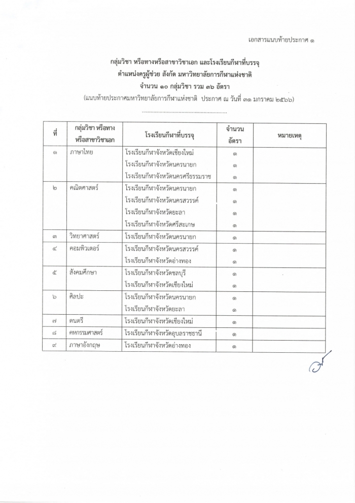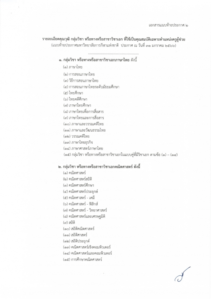 ด้วยมหาวิทยาลัยการกีฬาแห่งชาติ จะตำเนินการสอบแข่งขันเพื่อบรรจุและแต่งตั้งบุคคลเข้ารับราชการเป็นข้าราชการครูและบุคลากรทางการศึกษา ตำแหน่งครูผู้ช่วย สังกัด มหาวิทยาลัยการกีฬาแห่งชาติ อาศัยอำนาจตามความในมาตรา 6 แห่งพระราชบัญญัติมหาวิทยาลัยการกีฬาแห่งชาติพ.ศ. 2562 ประกอบกับมติสภามหาวิทยาลัยการกี่ฬาแห่งชาติ ในการประชุมครั้งที่ 1/2566 เมื่อวันที่ 30 มกราคม 2566 ได้อนุมัติหลักเกณฑ์และวิธีการสอบแข่งชันเพื่อบรรจุและแต่งตั้งบุคคลเข้ารับราชการเป็นข้าราชกรครูและบุคลากรทางการศึกษา ตำแหน่งครูผู้ช่วย สังกัด มหาวิทยาลัยการกีฬาแห่งชาติจึงประกาศรับสมัครสอบแข่งขัน