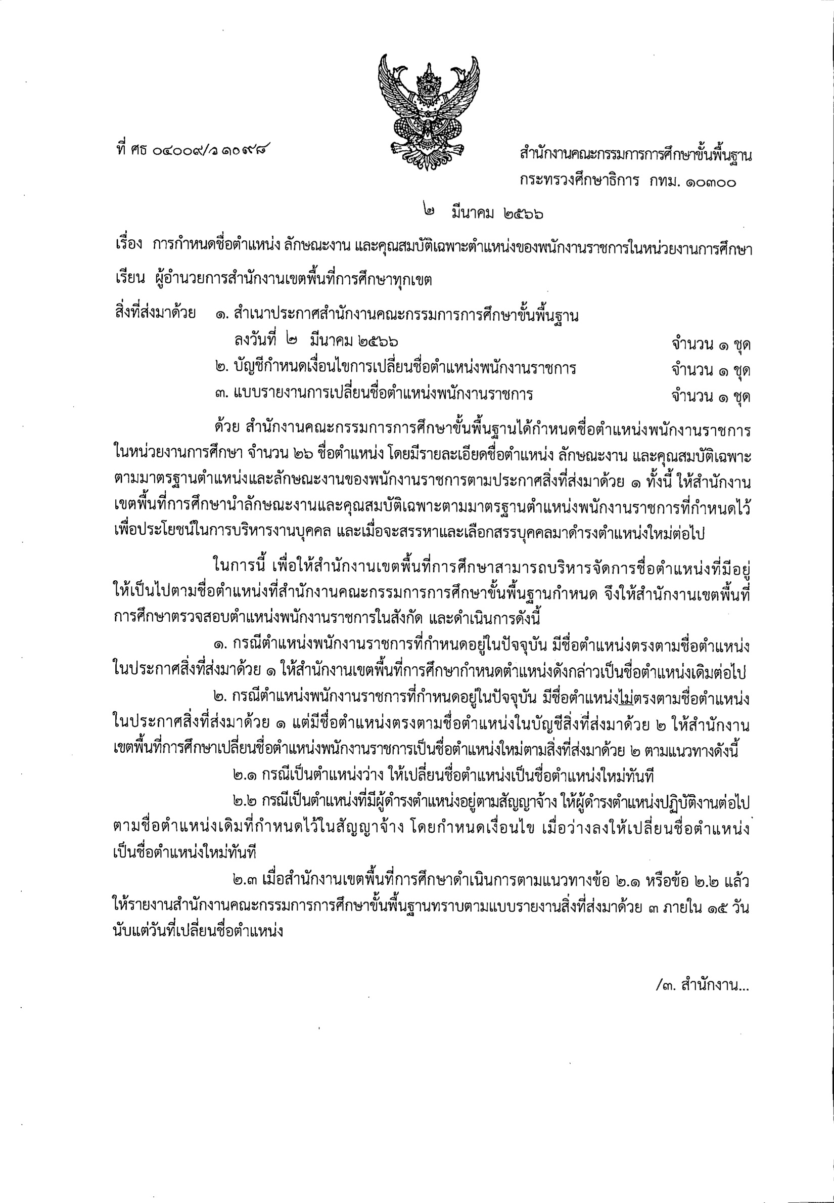 การกำหนดชื่อตำแหน่ง ลักษณะงาน และคุณสมบัติเฉพาะตำแหน่งของพนักงานราชการในหน่วยงานการศึกษา