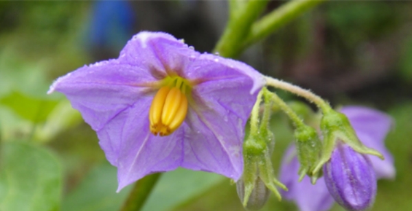 เป็นสัญลักษณ์แห่งความเคารพนอบน้อมและกตัญญูกตเวที อันเนื่องมาจากดอกมะเขือทุกดอกจะมีลักษณะพิเศษแตกต่างจากดอกไม้ทั่วไปอยู่อย่างหนึ่ง คือ จะชูกลีบดอกลงเบื้องล่าง จะไม่ชูกลีบดอกขึ้นเบื้องบนเหมือนดอกไม้อื่น ๆ คล้ายกับจะบอกว่า ตัวข้านี้เกิดมาจากดินและจากปุ๋ยอันสกปรก แต่ตัวข้าไม่ลืมดิน ไม่ลืมปุ๋ย นับเป็นบทเรียนที่ศิษย์ควรถือเป็นแบบอย่าง ไม่ควรลืมอุปการคุณของครูอาจารย์ ควรเคารพนบนอบและกตัญญูกตเวทีต่อครูอาจารย์ตลอดไป