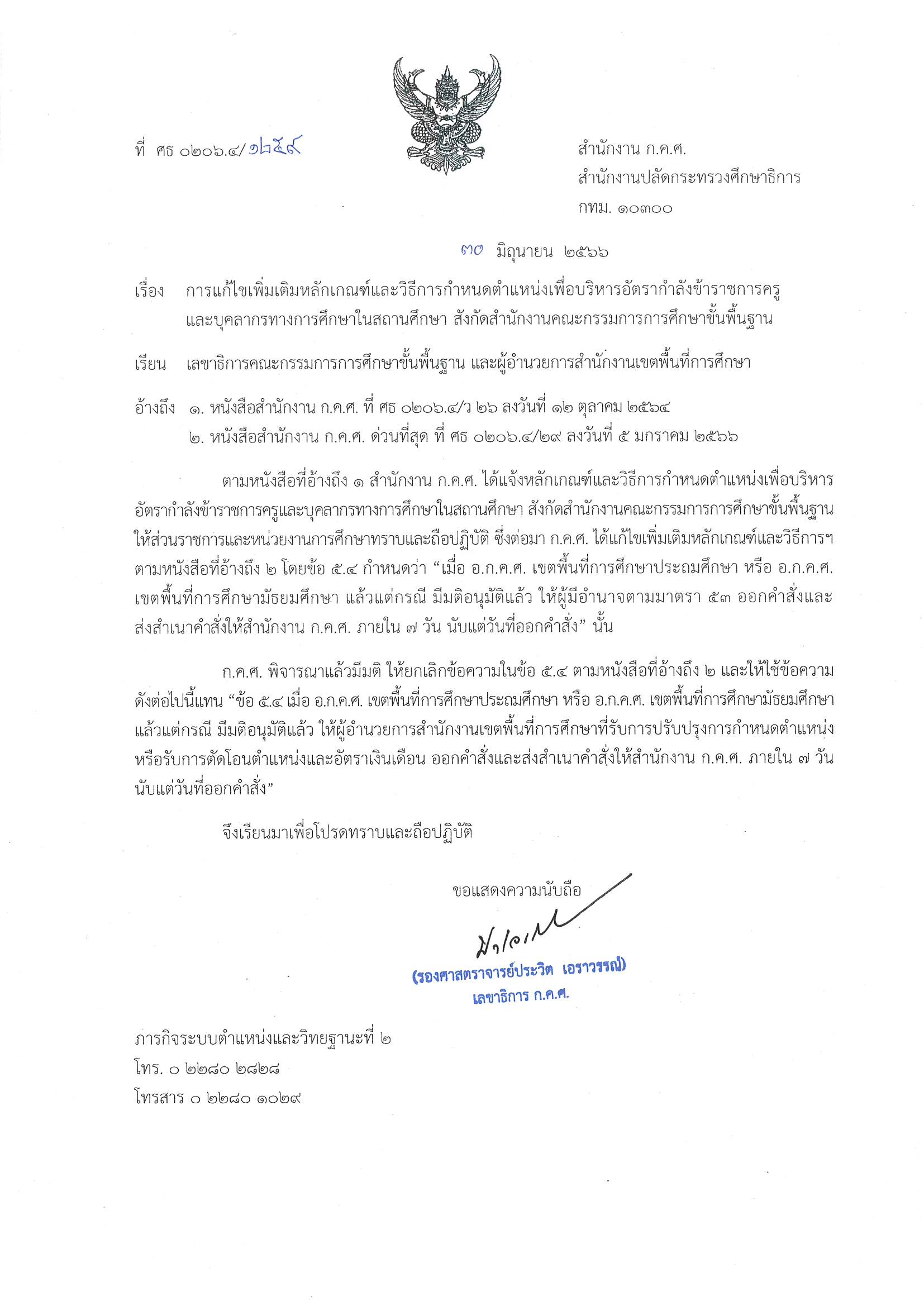 ๒. หนังสือสำนักงาน ก.ค.ศ. ด่วนที่สุด ที่ ศ5 ๐๒๐๖.๔/๒๙ ลงวันที่ ๕ มกราคม ๒๕๖๖