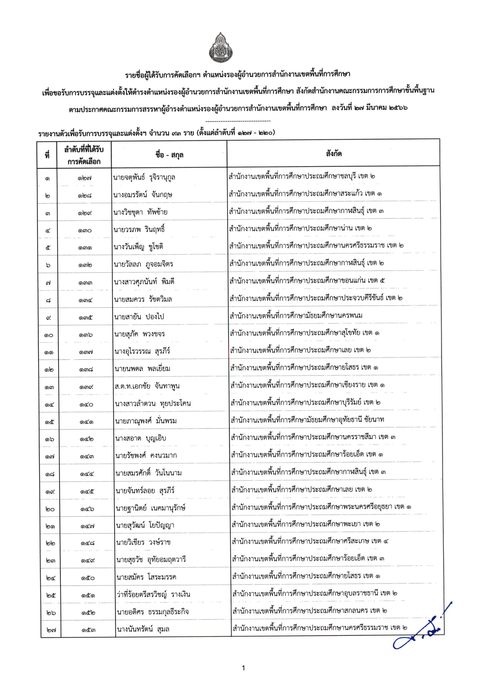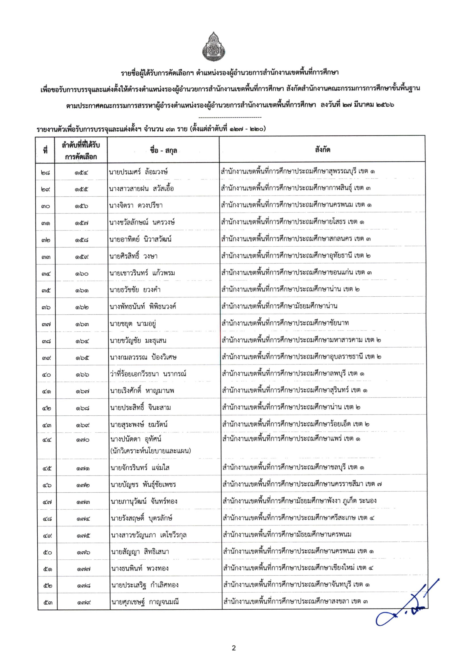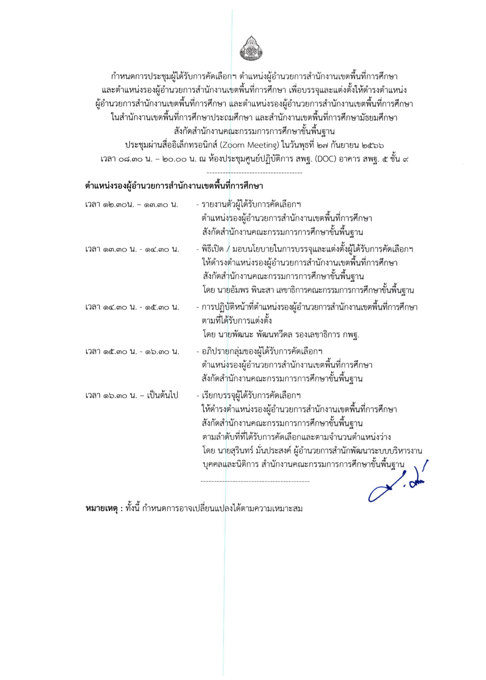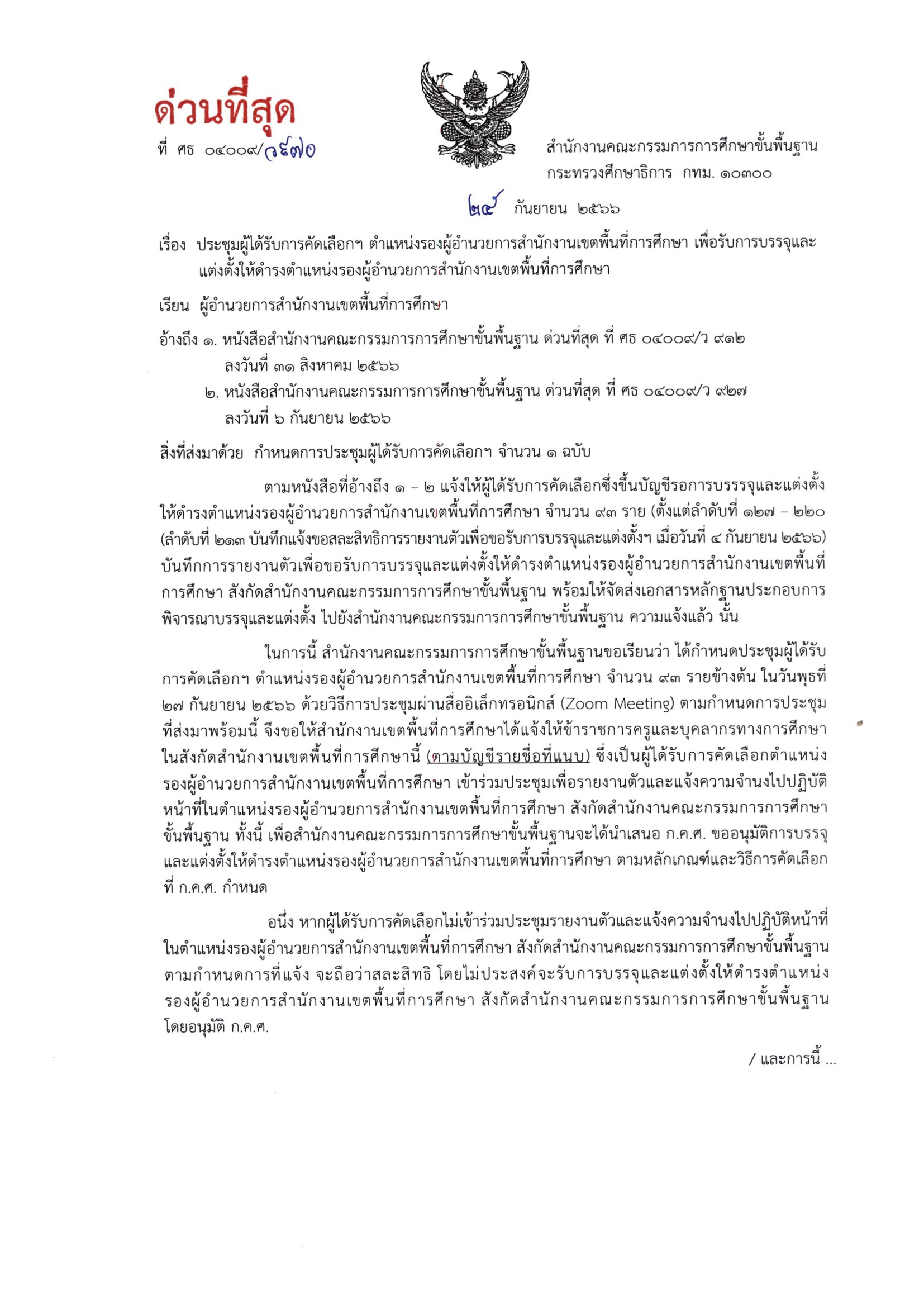 ด่วนที่สุด ที่ ศธ 04009/ว 970 เรื่อง ประชุมผู้ได้รับการคัดเลือกฯ ตำแหน่งรองผู้อำนวยการสำนักงานเขตพื้นที่การศึกษา เพื่อรับการบรรจุและแต่งตั้งให้ดำรงตำแหน่งรองผู้อำนวยการสำนักงานเขตพื้นที่การศึกษา