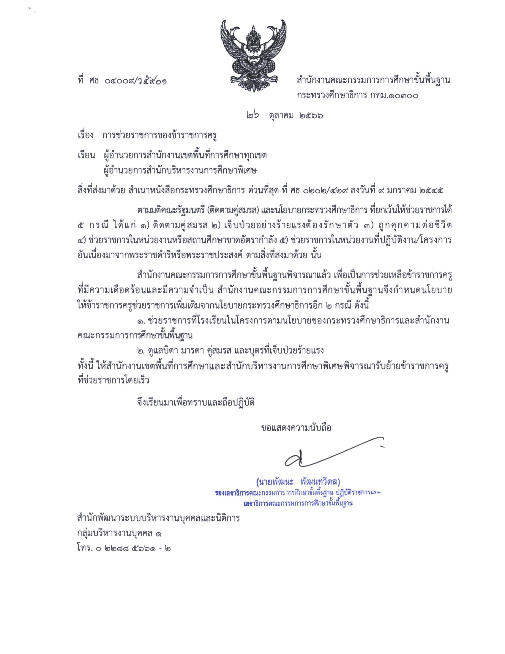 ที่ ศธ ๐๔๐๐๙/ว ๕๙๐๑ ลงวันที่ ๒๖ ตุลาคม ๒๕๖๖