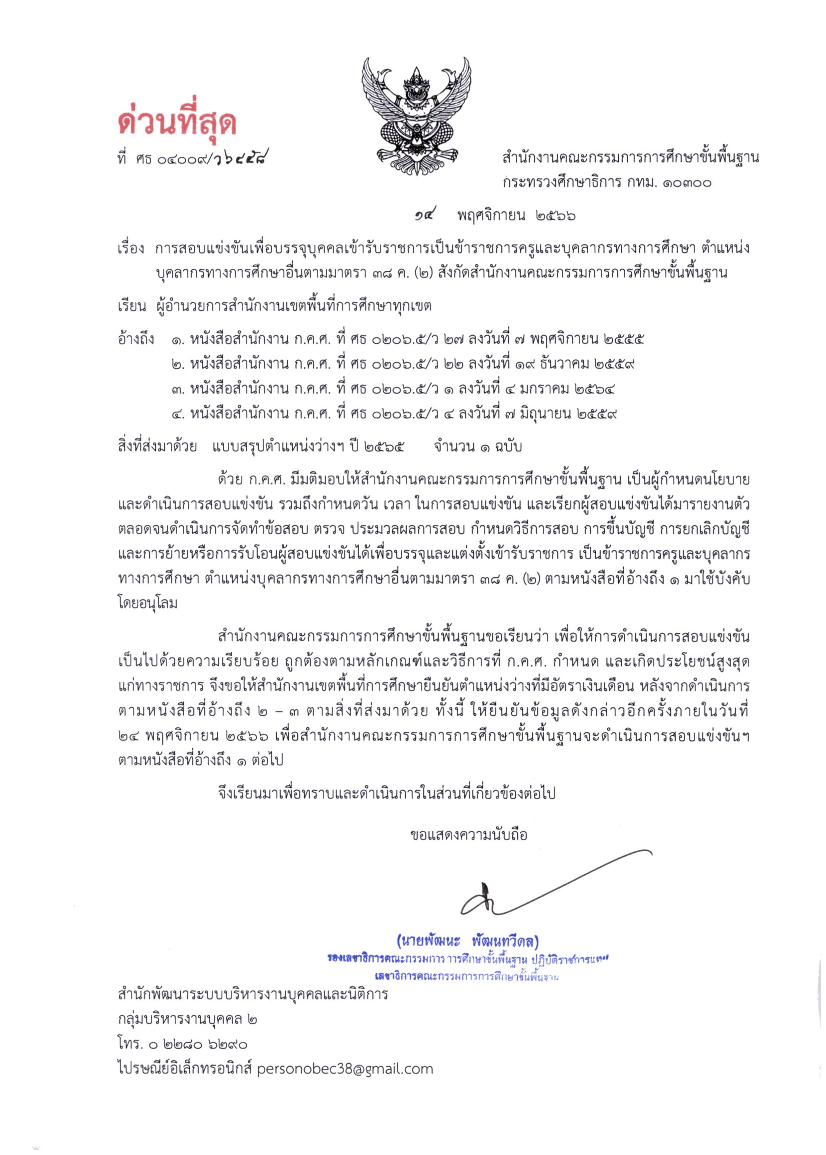 การสอบแข่งขันเพื่อบรรจุบุคคลเข้ารับราชการเป็นข้าราชการครูและบุคลากรทางการศึกษา ตำแหน่งบุคลากรทางการศึกษาอื่นตามมาตรา 38 ค. (2) สังกัด สพฐ.