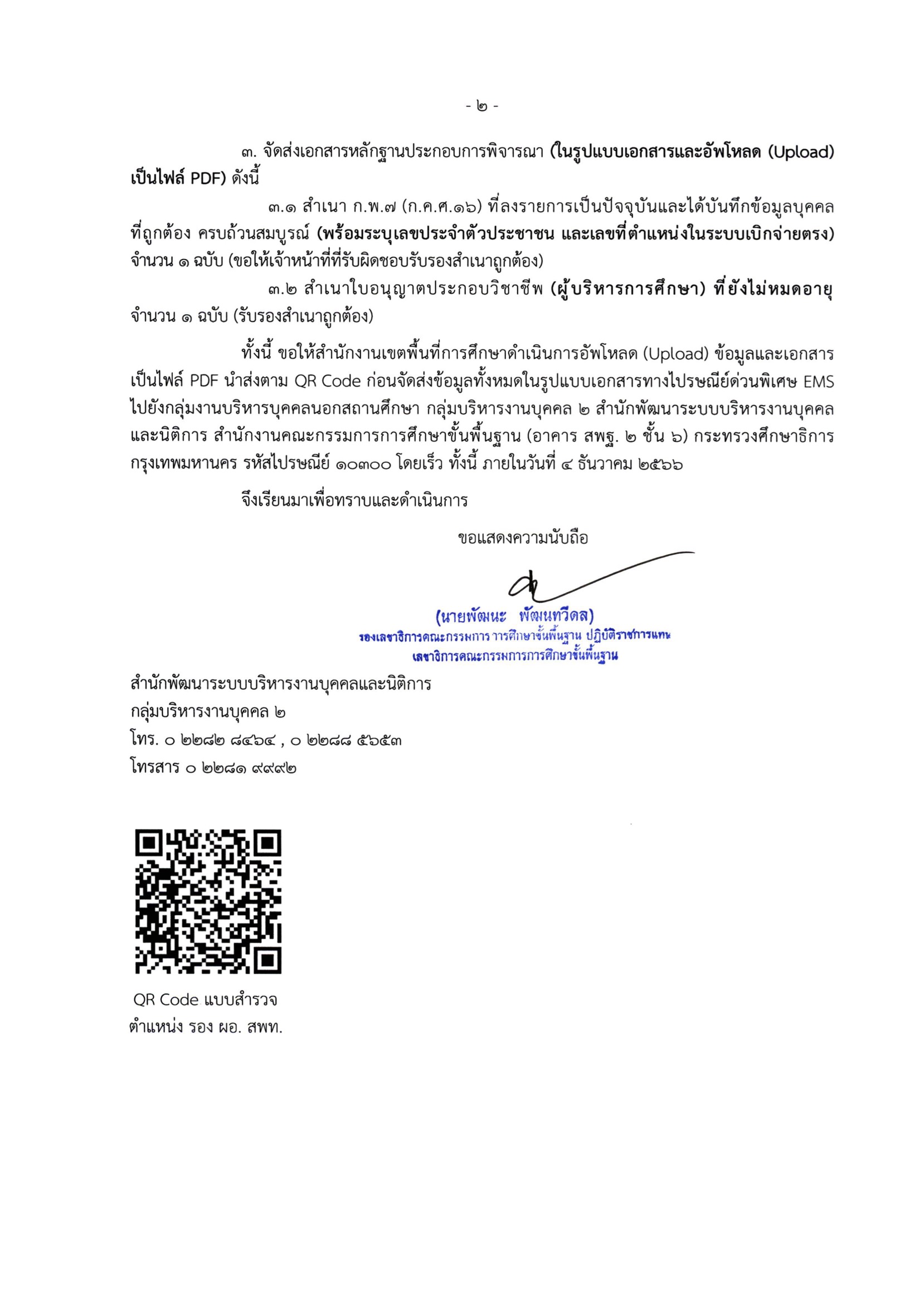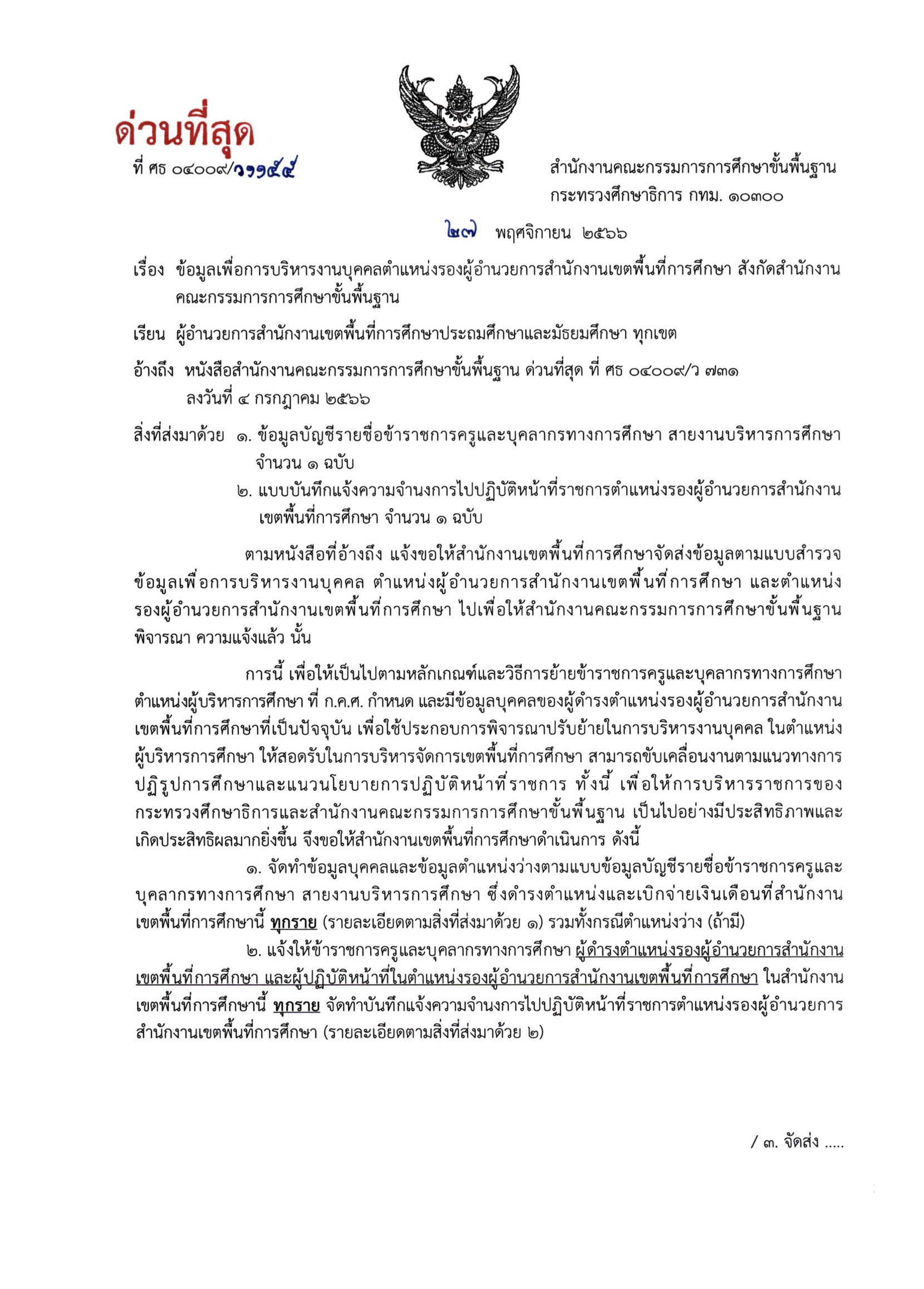 สพฐ.ขอข้อมูลเพื่อการบริหารงานบุคคลตำแหน่ง รอง ผอ. สพท.