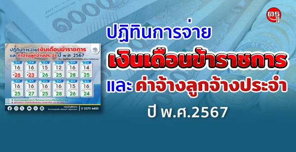 ปฏิทินการจ่ายเงินเดือนข้าราชการและค่าจ้างลูกจ้างประจำ ปี พ.ศ. 2567