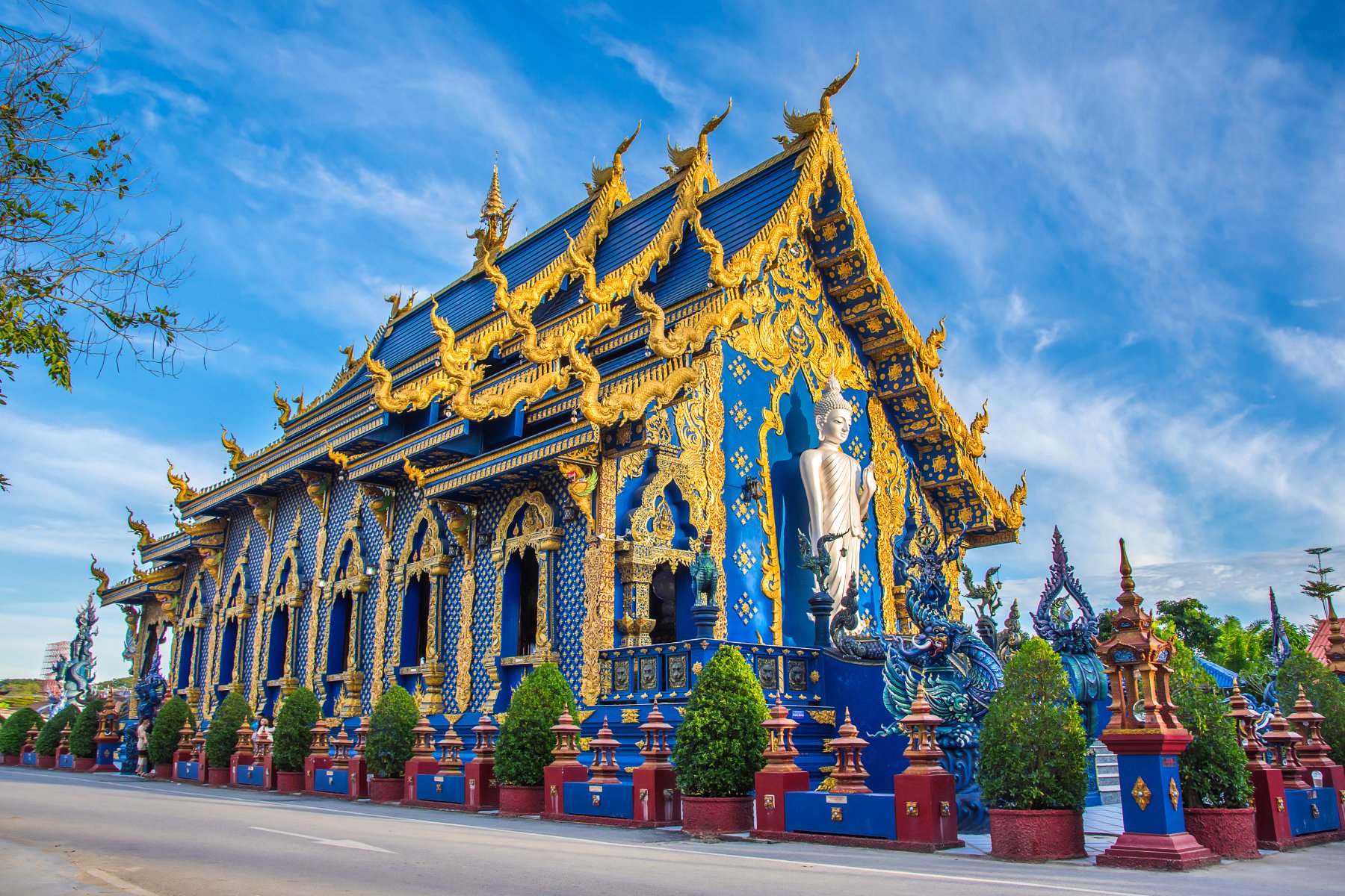วัดเชียงรายที่โดดเด่นด้วยสีน้ำเงินและสถาปัตยกรรมศิลปะแบบไทยประยุกต์อันแสนวิจิตรงดงาม ซึ่งมีลักษะคล้ายๆ กับวัดร่องขุ่นนั่นก็เพราะว่าศิลปินที่สร้างสรรค์วัดแห่งนี้คือ สล่านก ศิลปินท้องถิ่นชาวเชียงราย ลูกศิษย์ของอาจารย์เฉลิมชัย โฆษิตพิพัฒน์นั่นเอง เป็นอีกพิกัดท่องเที่ยวเชียงรายที่ไม่ควรพลาดเพราะนอกจากจะได้ชมงานศิลปะสวยๆ ยังได้ไหว้พระขอพรเพื่อความเป็นสิริมงคลอีกด้วย