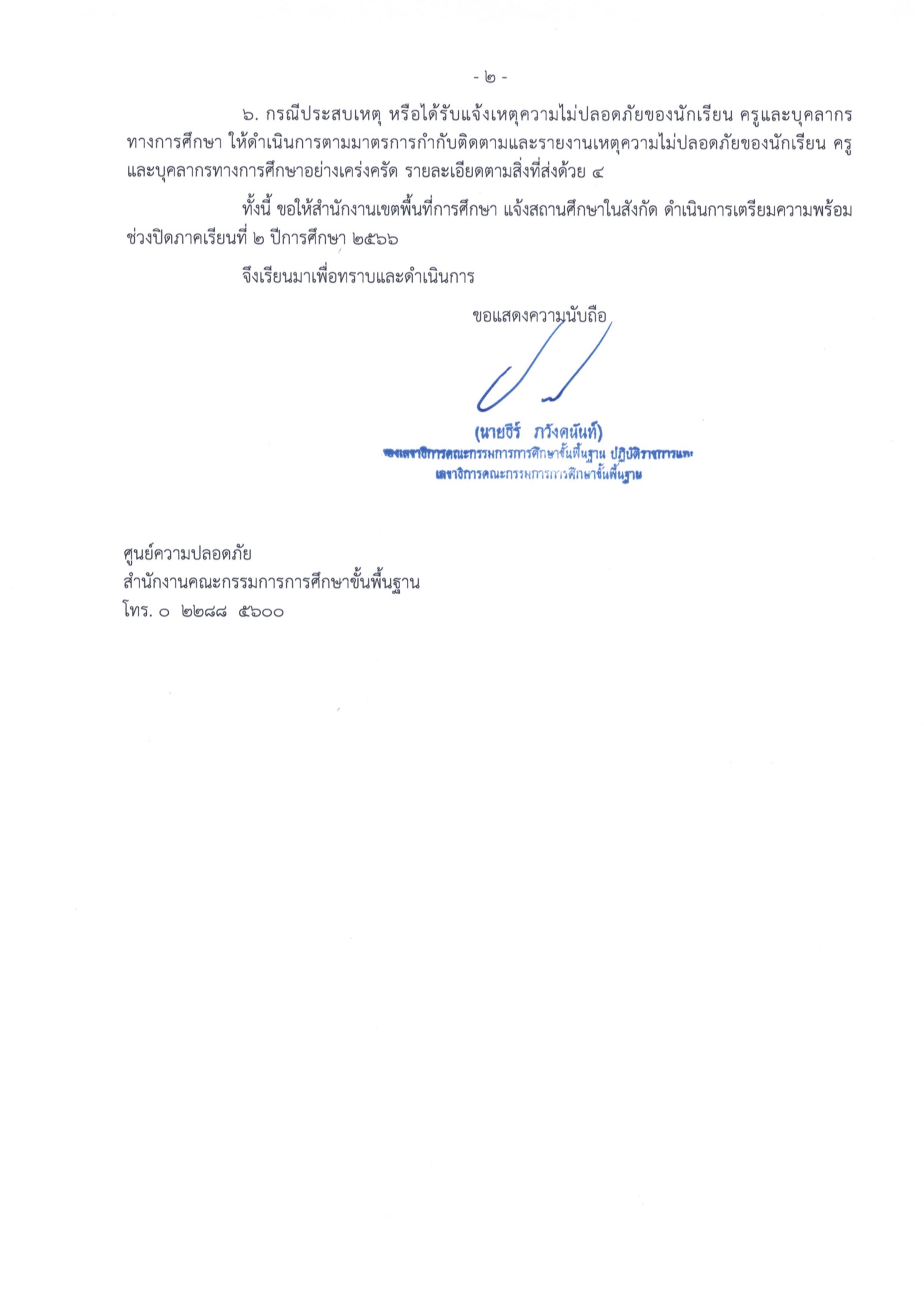 สพฐ.กำชับมาตรการการเตรียมความพร้อมช่วงปิดภาคเรียนของสถานศึกษา