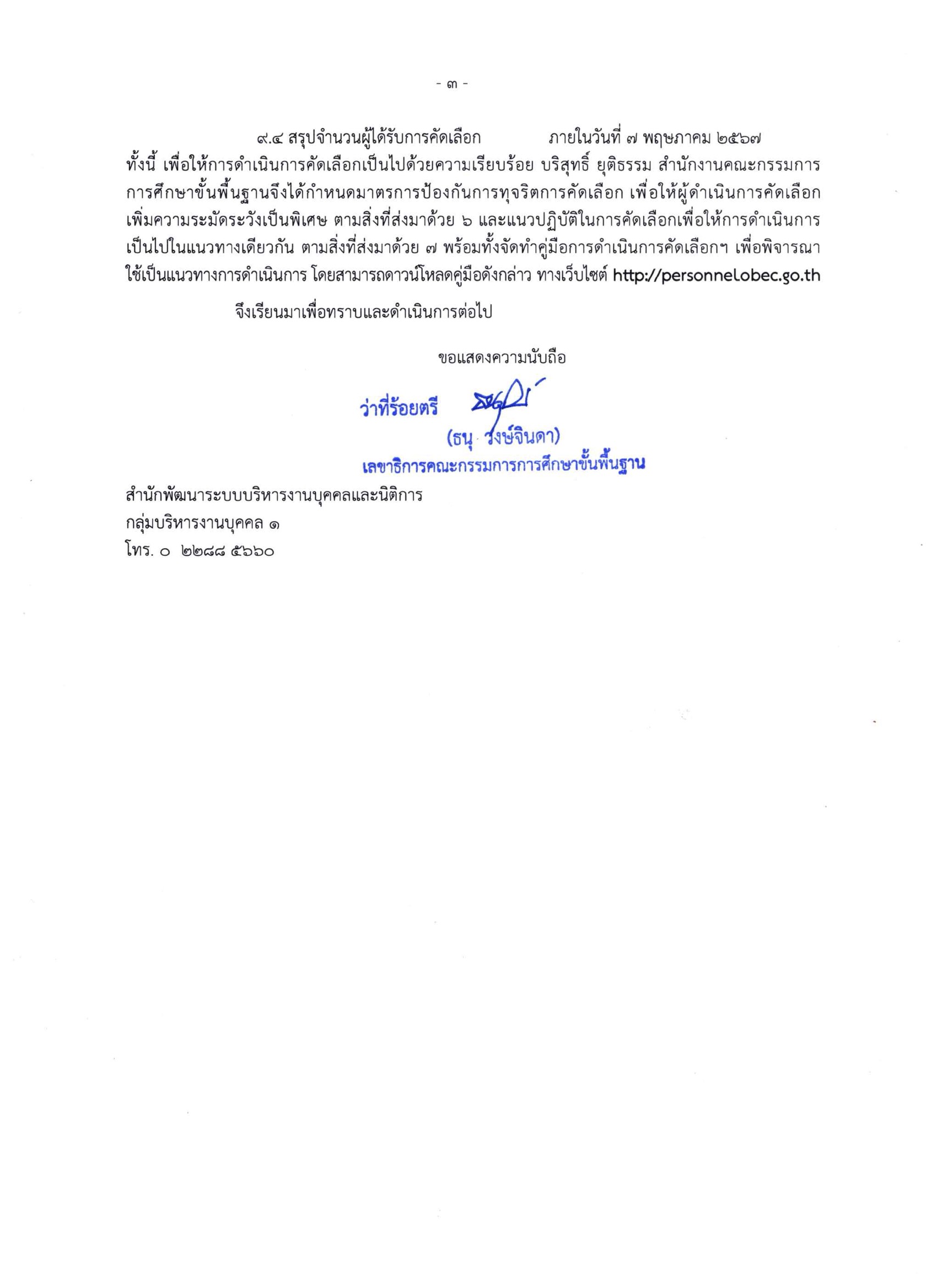 ด่วนที่สุด การคัดเลือกบุคคลเพื่อบรรจุและแต่งตั้งเข้ารับราชการเป็นข้าราชการครูฯ ตำแหน่งครูผู้ช่วย กรณีที่มีความจำเป็นหรือมีเหตุพิเศษ สังกัด สพฐ. ปี พ.ศ. 2567