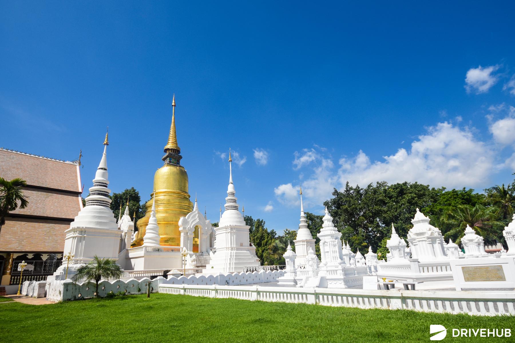 เชื่อว่าหลายคนน่าจะเคยเห็นภาพความสวยงามของเจดีย์สีขาวหลายองค์ เรียกได้ว่าเป็นอีกหนึ่งจุดถ่ายรูปสุดฮิตต้องห้ามพลาดเมื่อมาเที่ยวเชียงใหม่เลยครับ ซึ่งเจดีย์สีขาวกลายมาเป็นเอกลักษณ์ของวัดสวนดอก นอกจากเจดีย์สีขาวแล้ว ยังมีเจดีย์ใหญ่ทรงลังกาซึ่งบรรจุพระบรมสารีริกธาตุไว้ภายใน สามารถแวะมาไหว้ขอพรเพื่อความเป็นสิริมงคลให้กับชีวิต