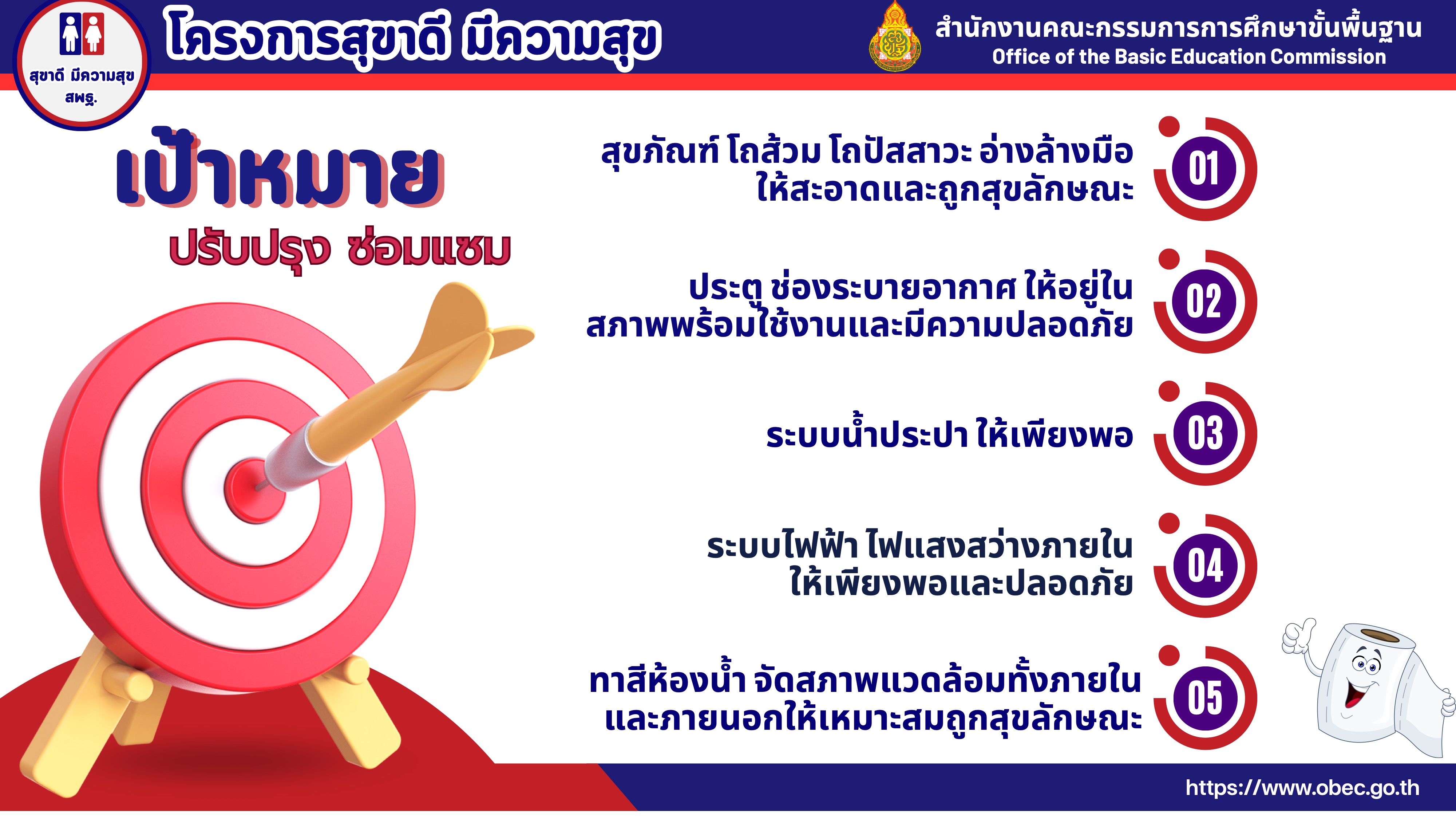 สพฐ.เปิดตัวโครงการ "สุขาดี มีความสุข" เป้าหมายสถานศึกษามีห้องน้ำครู/นักเรียนที่ สะอาด สะดวก สบาย สุขลักษณะ สวยงาม