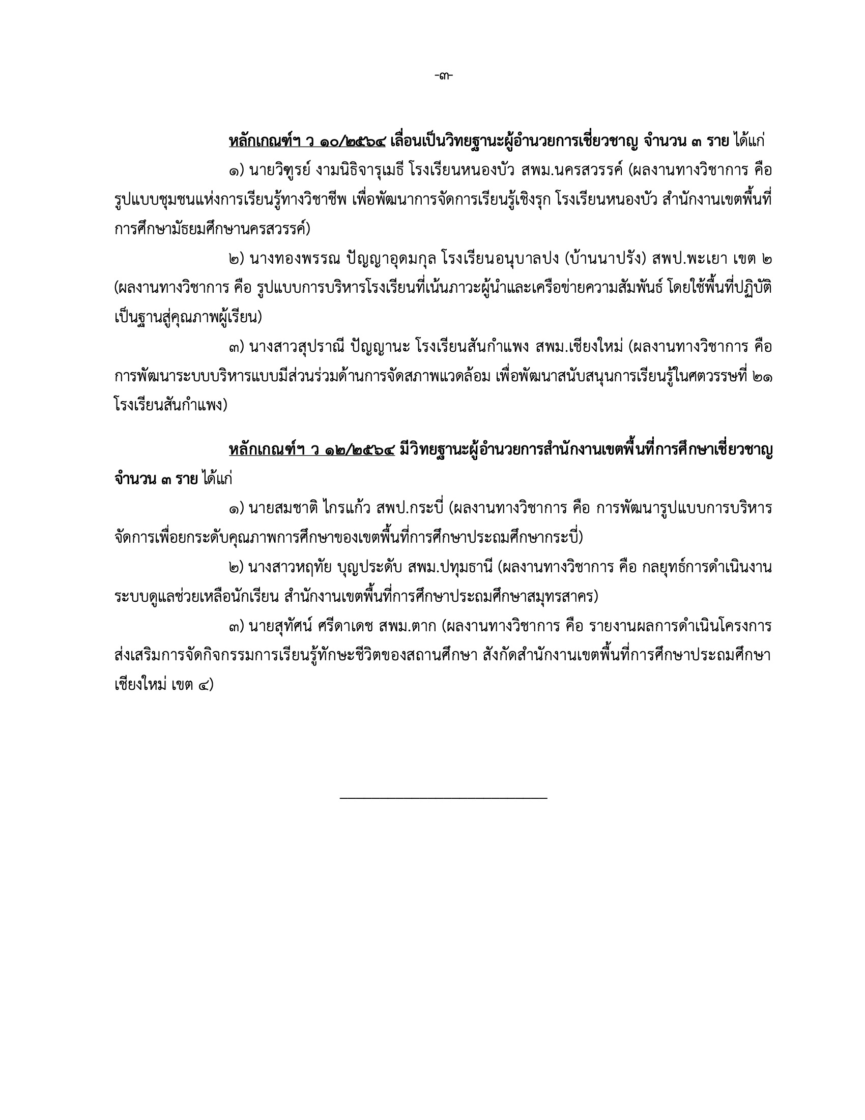 เลื่อนเป็นวิทยฐานะผู้อำนวยการเชี่ยวชาญ จำนวน ๓ ราย