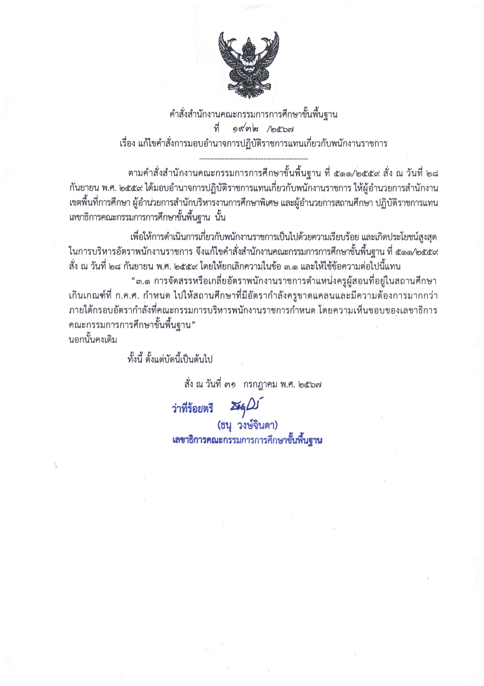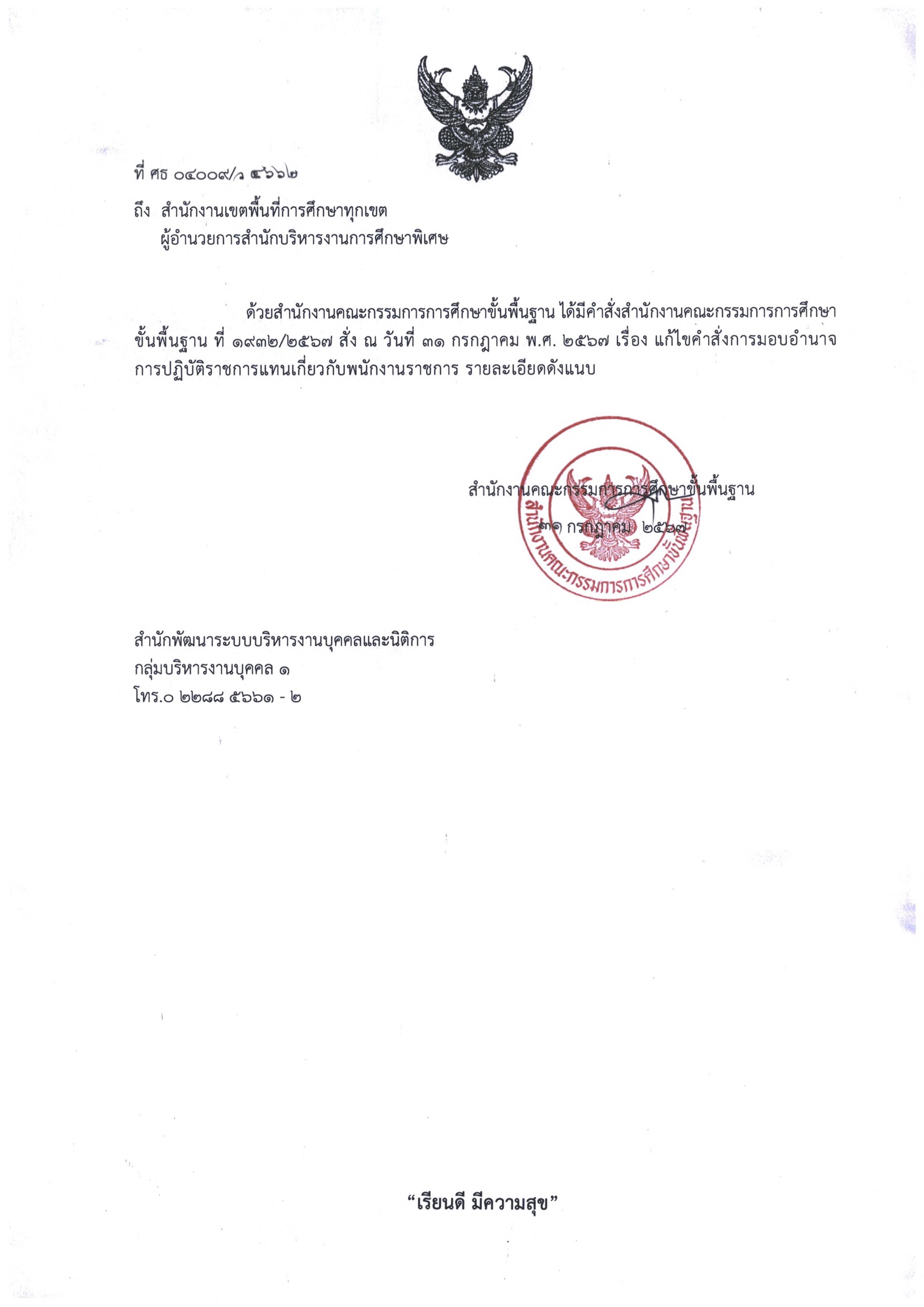 สพฐ.แก้ไขคำสั่งการมอบอำนาจการปฏิบัติราชการแทนเกี่ยวกับพนักงานราชการ