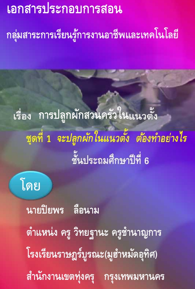 ชื่อเจ้าของผลงาน นายวสุกฤต สุวรรณเทน