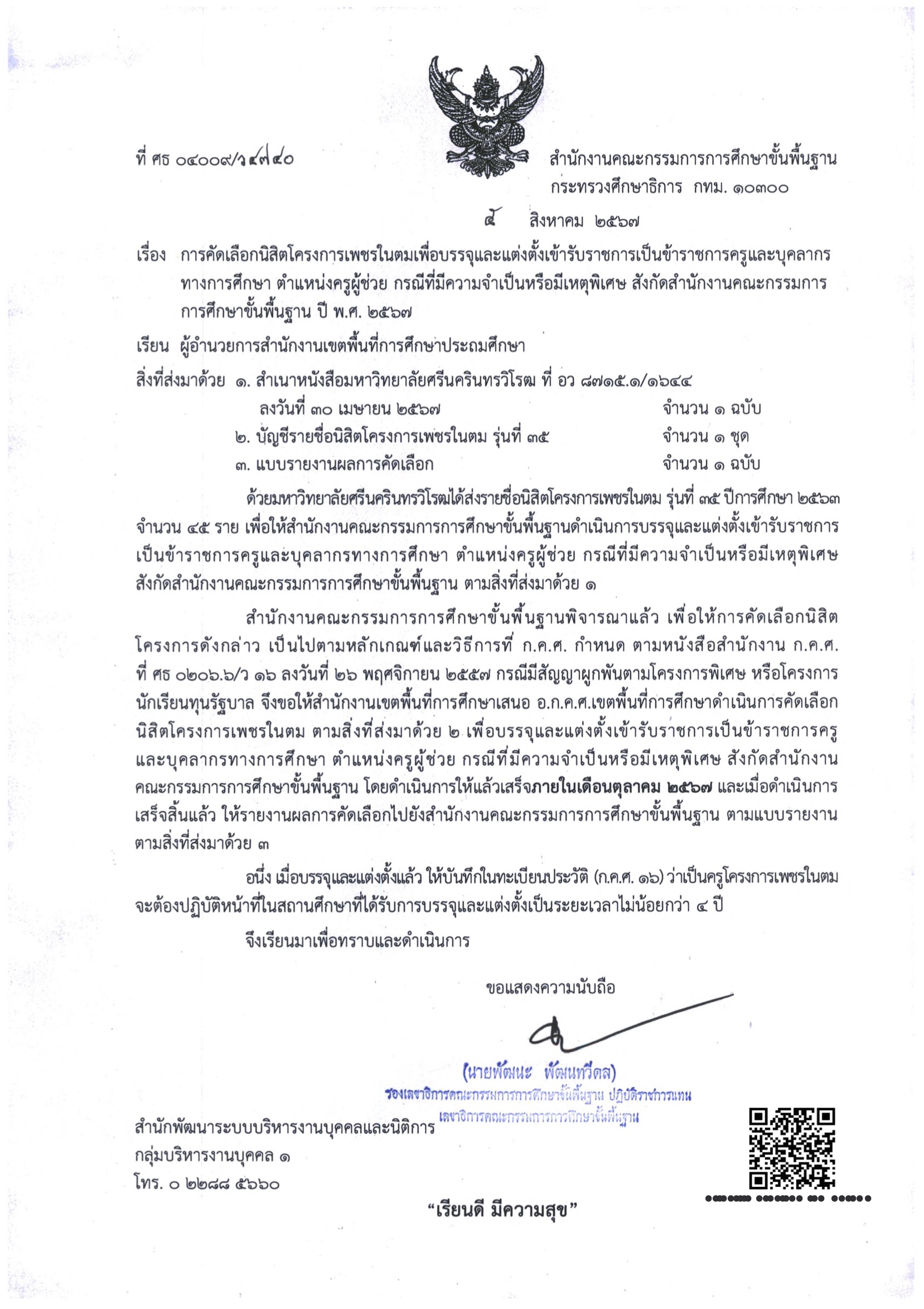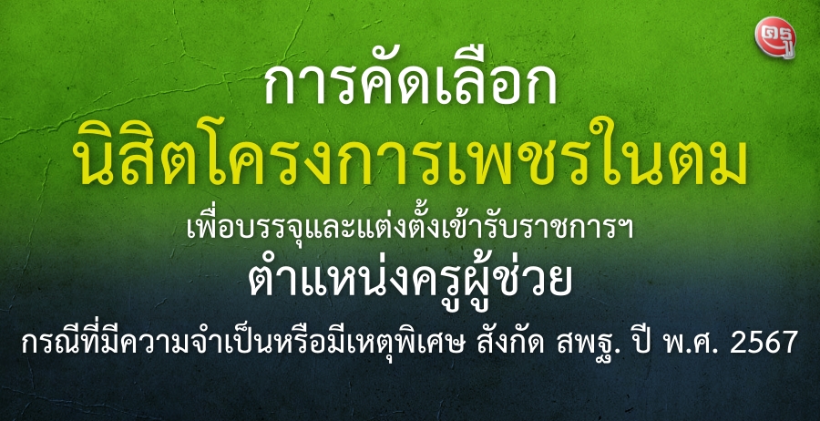 การคัดเลือกนิสิตโครงการเพชรในตมเพื่อบรรจุและแต่งตั้งเข้ารับราชการเป็นข้าราชการครูและบุคลากรทางการศึกษา ตำแหน่งครูผู้ช่วย กรณีที่มีความจำเป็นหรือมีเหตุพิเศษ สังกัด สพฐ. ปี พ.ศ. 2567