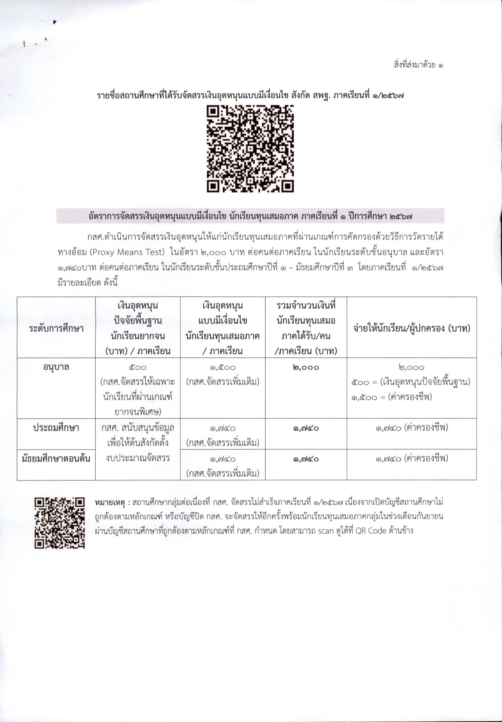 ด่วนที่สุด! แจ้งผลการจัดสรรเงินอุดหนุนนักเรียนยากจนพิเศษแบบมีเงื่อนไข (นักเรียนทุนเสมอภาค) กลุ่มต่อเนื่อง สังกัดสำนักงานคณะกรรมการการศึกษาขั้นพื้นฐาน ภาคเรียนที่ 1 ปีการศึกษา 2567