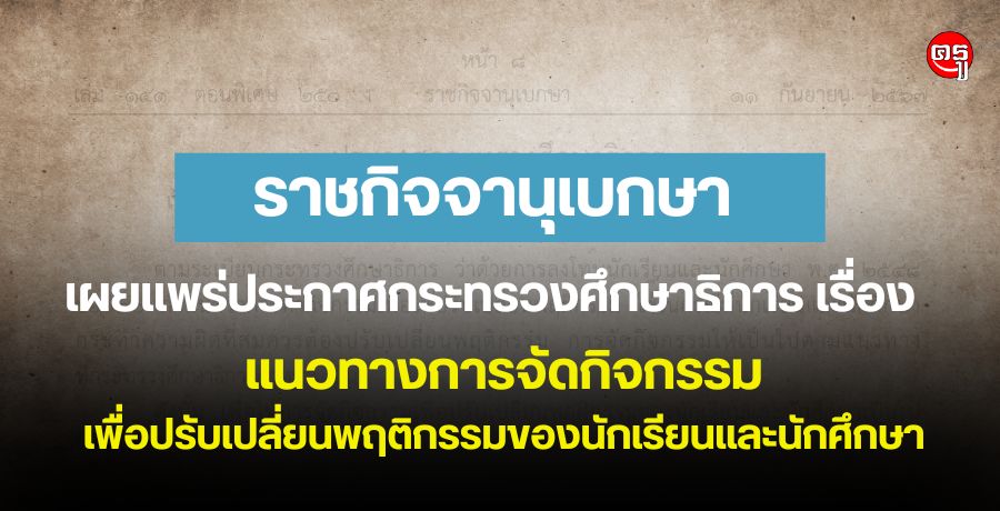 เมื่อวันที่ 11 กันยายน 2567 เว็บไซต์ราชกิจจานุเบกษา ได้เผยแพร่ประกาศกระทรวงศึกษาธิการ เรื่อง แนวทางการจัดกิจกรรมเพื่อปรับเปลี่ยนพฤติกรรมของนักเรียนและนักศึกษา