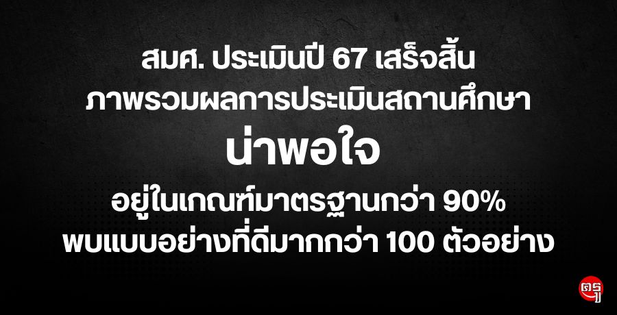 ดร.นันทา กล่าวเพิ่มเติมว่า ภาพรวมผลการประเมินคุณภาพภายนอกประจำปีงบประมาณ 2567 อยู่ในระดับที่น่าพอใจ สถานศึกษาส่วนใหญ่เป็นไปตามมาตรฐานซึ่งมีการดำเนินการตามเป้าหมายที่แต่ละสถานศึกษากำหนดไว้ในแผนพัฒนากว่าร้อยละ 90 และมีแบบอย่างที่ดี (Best Practice) ในทุกระดับการศึกษารวมมากกว่า 100 ตัวอย่างซึ่ง สมศ. จะทำการรวบรวมและตรวจสอบความถูกต้องของข้อมูลเพื่อเผยแพร่หน้าเว็บไซต์ สมศ. www.onesqa.or.th สำหรับให้สถานศึกษาที่สนใจเข้ามาศึกษา และนำตัวอย่างที่เหมาะสมไปปรับใช้ให้สอดคล้องกับบริบทสถานศึกษาของตนต่อไป