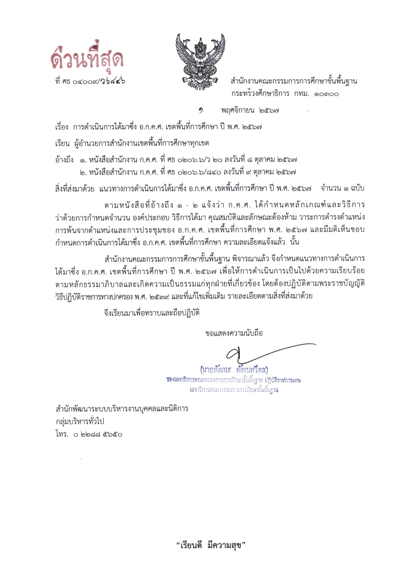 อ้างถึง 1.หนังสือสำนักงาน ก.ค.ศ.ที่ ศธ 0206.6/ว 20 ลงวันที่ 8 ตุลาคม 2567