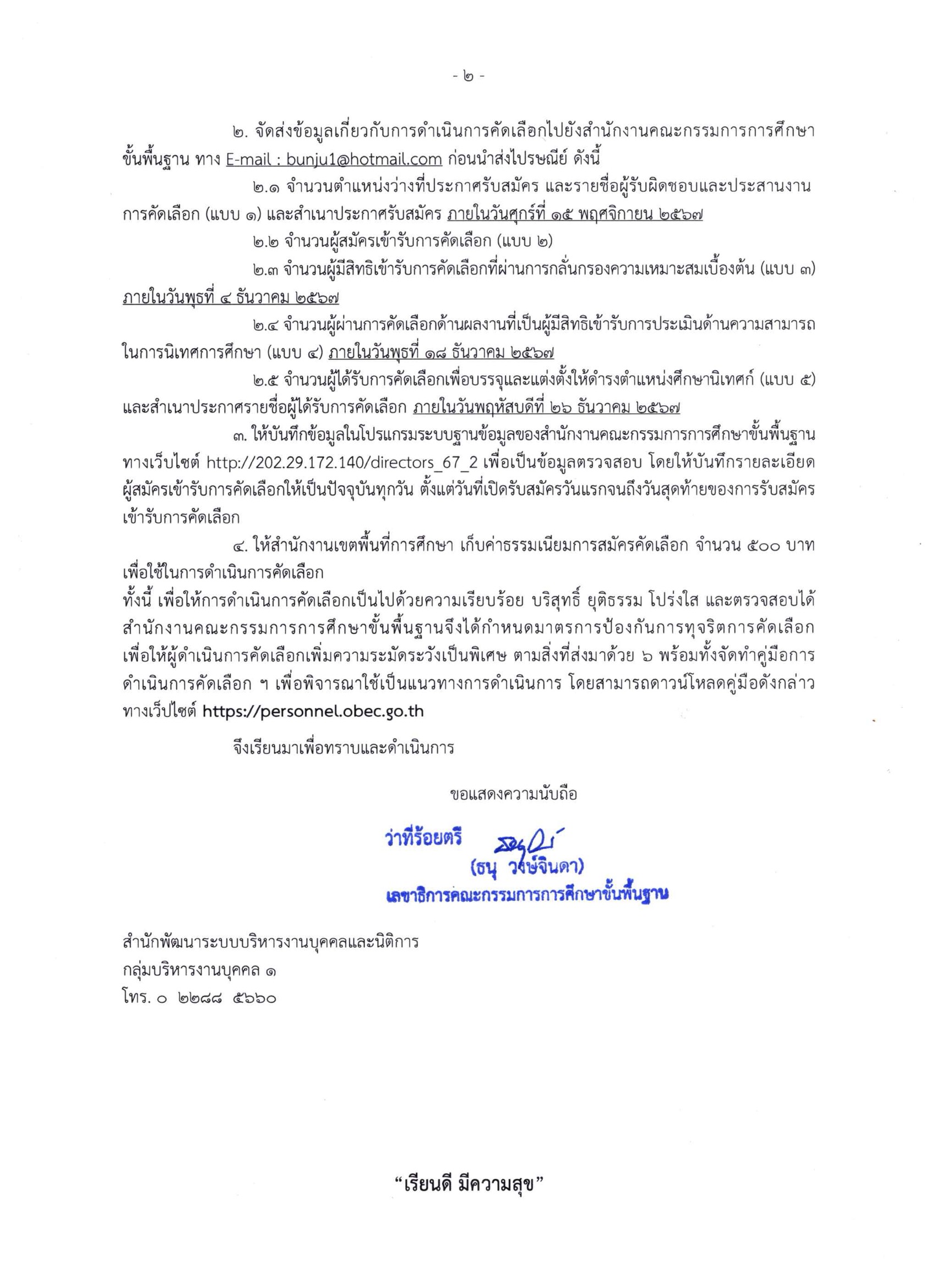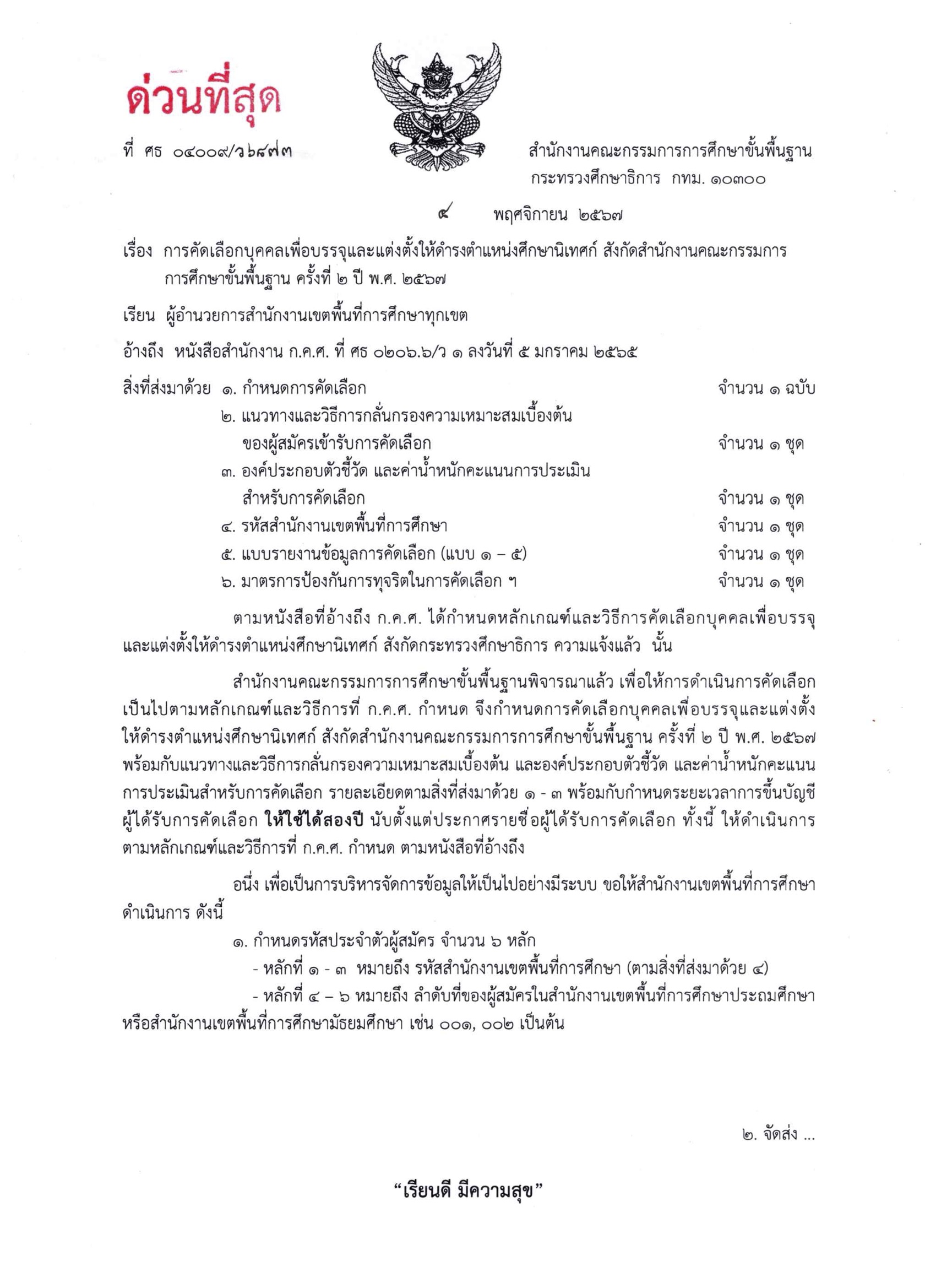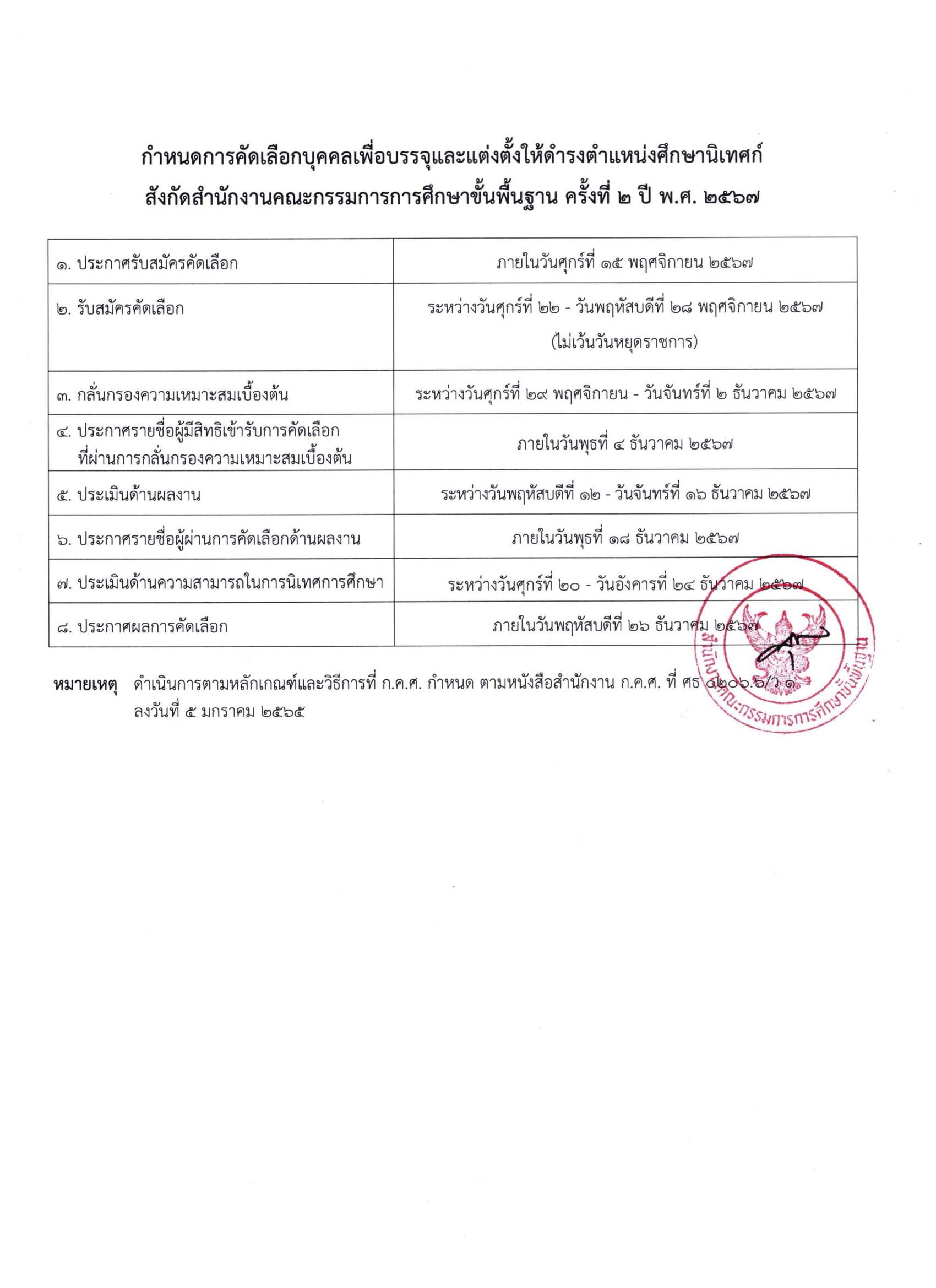 การคัดเลือกบุคคลเพื่อบรรจุและแต่งตั้งให้ดำรงตำแหน่งศึกษานิเทศก์ สังกัดสำนักงานคณะกรรมการการศึกษาขั้นพื้นฐาน ครั้งที่ 2 ปี พ.ศ. 2567