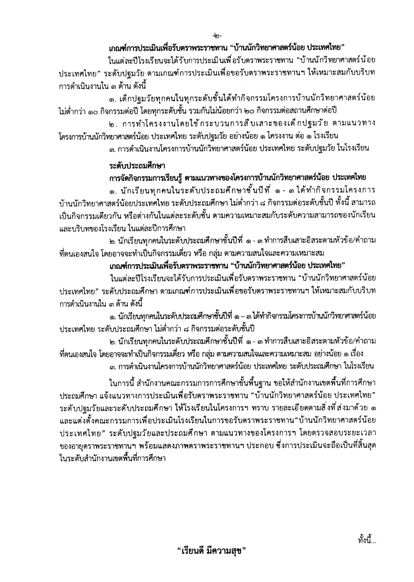 แนวทางการประเมินเพื่อรับตราพระราชทาน "บ้านนักวิทยาศาสตร์น้อย ประเทศไทย" ระดับปฐมวัยและประถมศึกษา สำหรับโรงเรียนในเครือข่าย สำนักงานคณะกรรมการการศึกษาขั้นพื้นฐาน ปีการศึกษา 2567