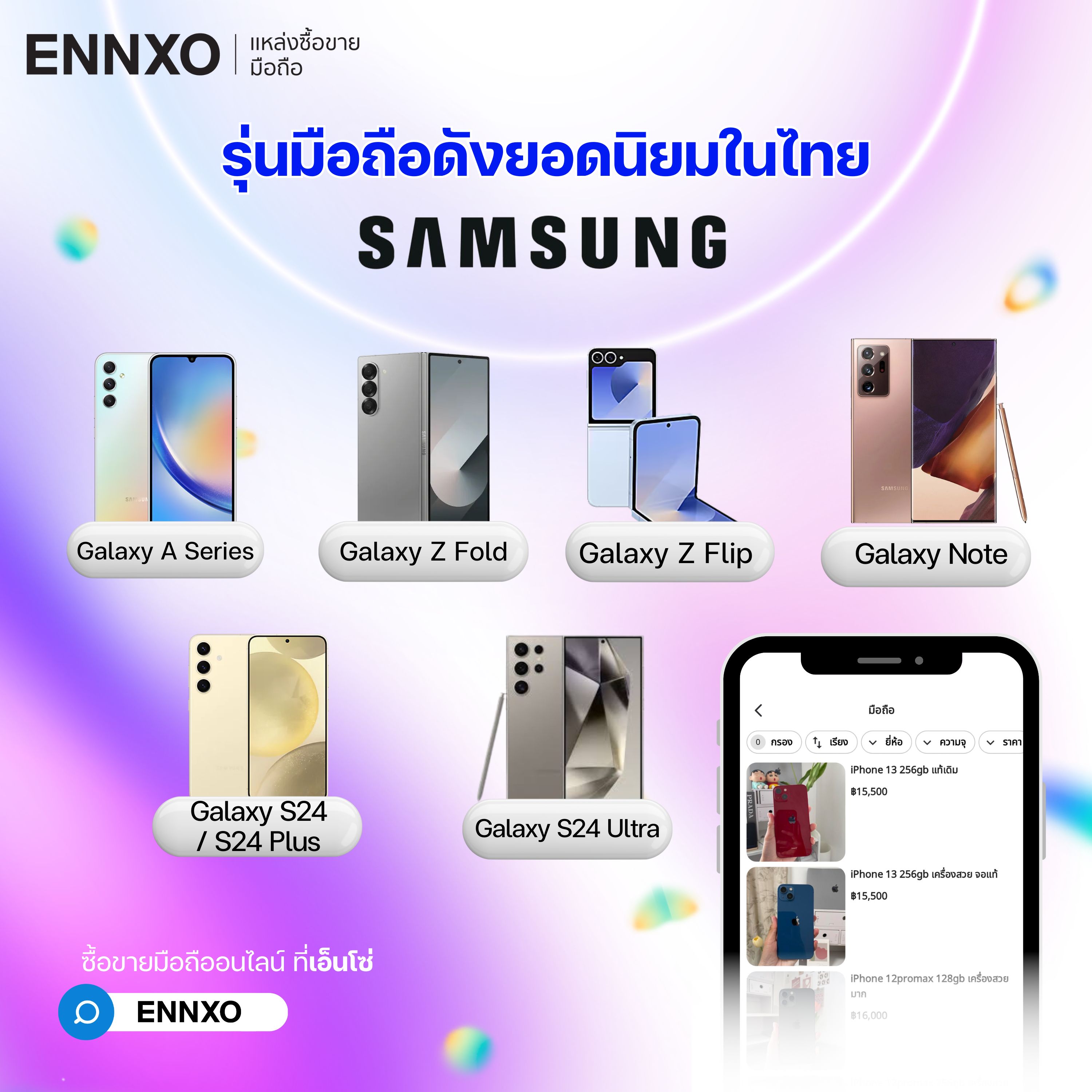 โทรศัพท์ Android เจ้าตลาดจะเป็นแบรนด์ไหนไปไม่ได้ต้อง “โทรศัพท์มือถือซัมซุง” ค่ายที่ผลิตมือถือออกมาหลายซีรีส์หลายรุ่น ตั้งแต่ราคาถูกไปจนถึงตัวท็อป S Series ราคาครึ่งแสน เช่น Samsung Galaxy A Series A34, A54, Galaxy Z Fold, Galaxy Z Flip, Galaxy Note, Galaxy S24, และ S24 Ultra เป็นต้น ตอบโจทย์กลุ่มใช้งานที่หลากหลาย โดยสามารถเลือกซื้อมือถือ Samsung ทุกรุ่นราคาถูกได้ที่ตลาดมือถือเอ็นโซ่