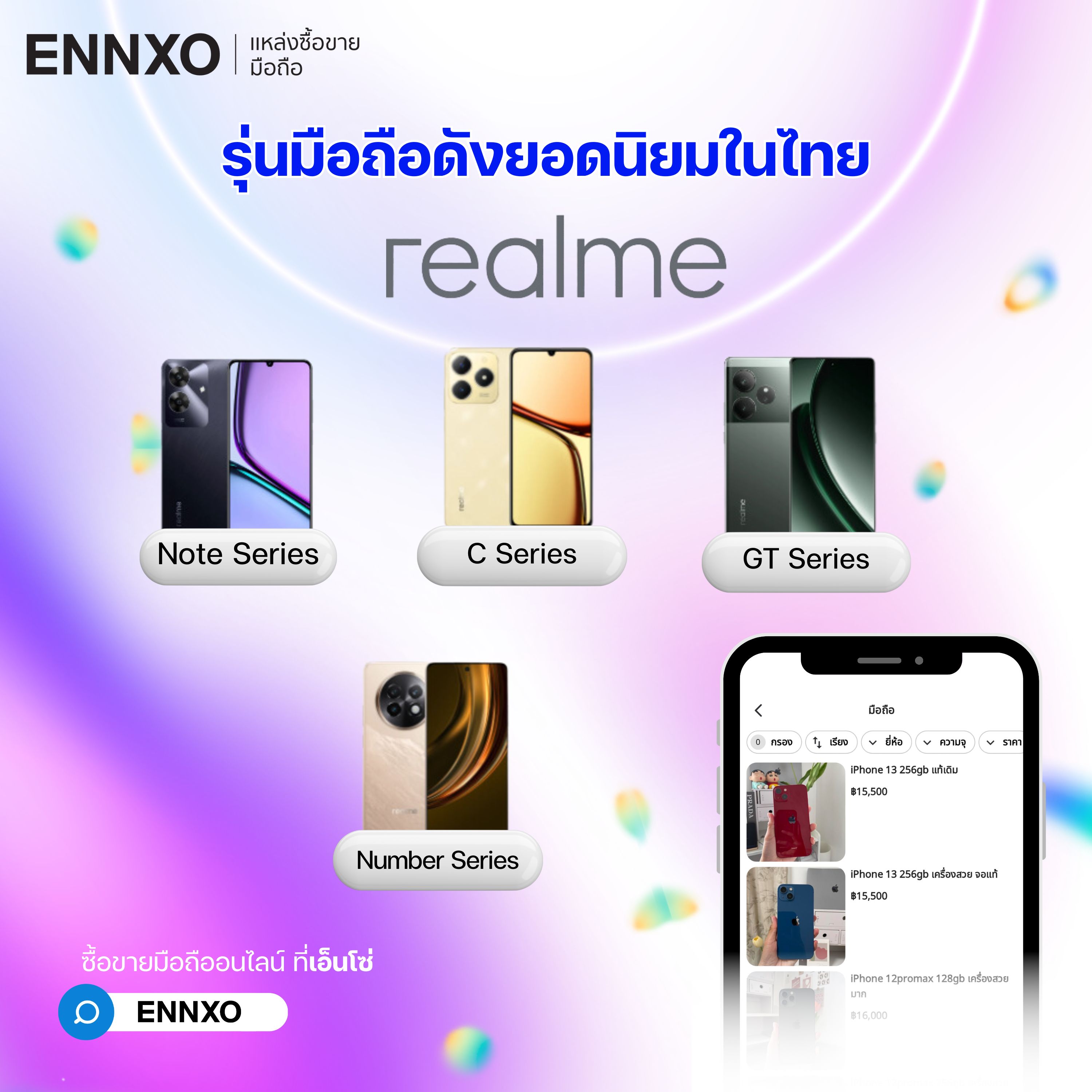 อีกแบรนด์ยอดนิยมที่มีฟีเจอร์ทันสมัยและใช้งานได้ดีมีประสิทธิภาพ และมีราคาให้เลือกที่หลากหลายตั้งแต่ Realme C Series ราคาประหยัดไปจนถึง Realme GT Series ซีรีส์เรือธงของแบรนด์