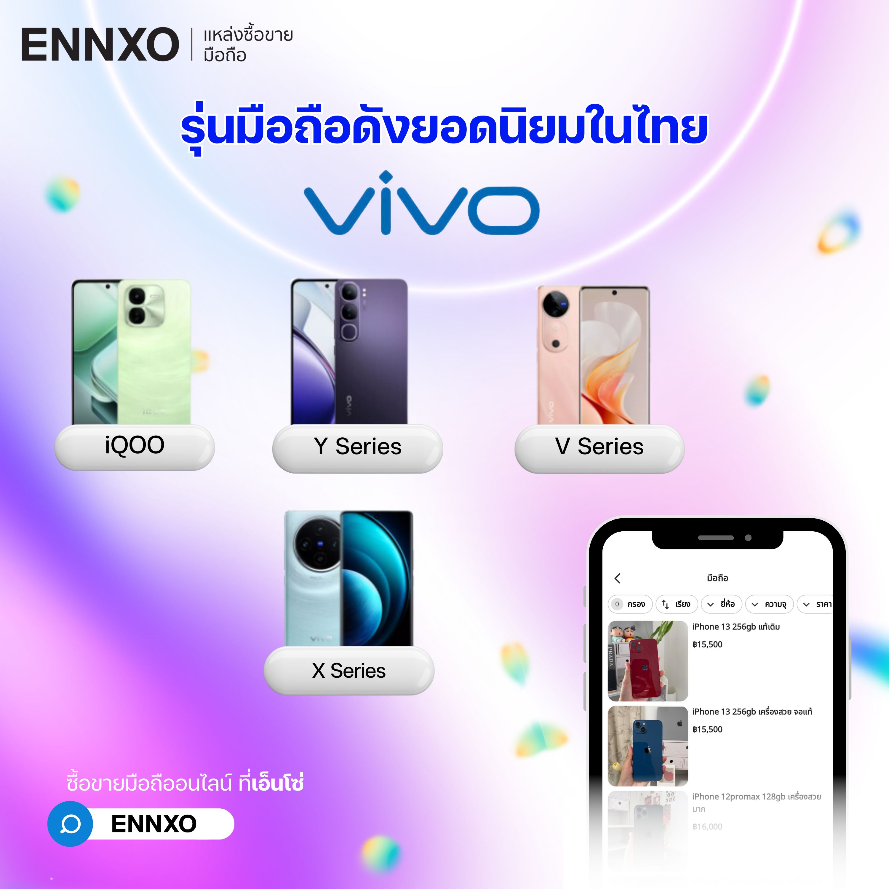 ค่ายดังสัญชาติจีนเจ้าเดียวกับ OnePlus แบรนด์มือถือที่ไม่ได้มีดีแค่ราคา แม้จะเป็นโทรศัพท์มือสองก็ยังซื้อขายได้ราคาดี และมีหลากหลายรุ่นให้เลือกตั้งแต่ Vivo S Series ไปจนถึงรุ่นเรือธง Vivo X Series สามารถเช็คราคามือถือ Vivo ทุกรุ่นที่เอ็นโซ่ตลาดมือถือออนไลน์