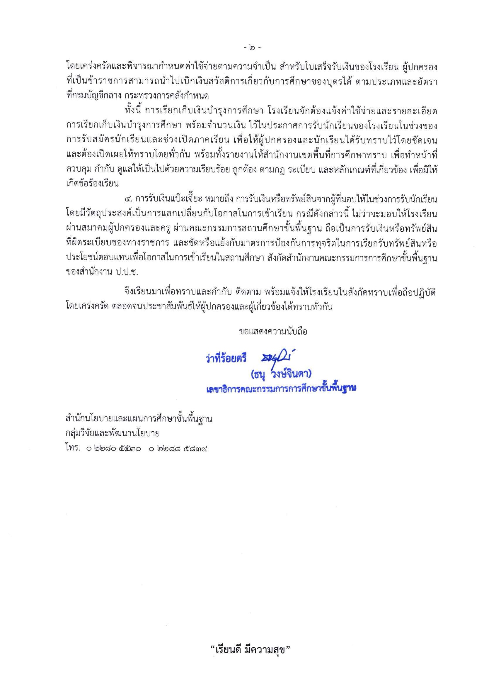 จึงเรียนมาเพื่อทราบและกำกับ ติดตาม พร้อมแจ้งให้โรงเรียนในสังกัดทราบเพื่อถือปฏิบัติ โดยเคร่งครัด ตลอดจนประชาสัมพันธ์ให้ผู้ปกครองและผู้เกี่ยวข้องได้ทราบทั่วกัน